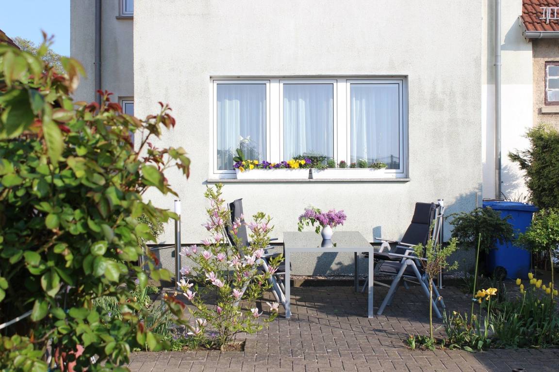 Eine sonnige Terrasse hinter dem Haus lädt zum Verweilen ein. Auf Wunsch stellen wir einen Grill zur Verfügung.