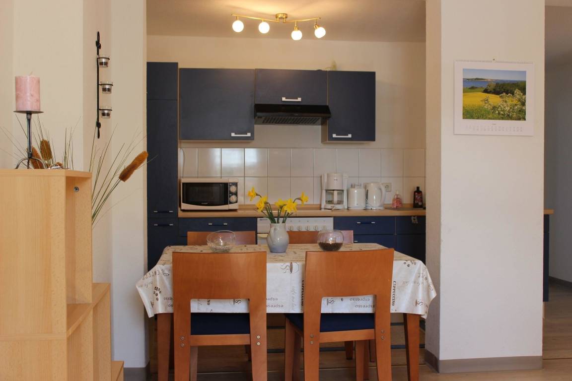 Die offene Küche ist großzügig ausgestattet und verfügt über einen Essbereich.