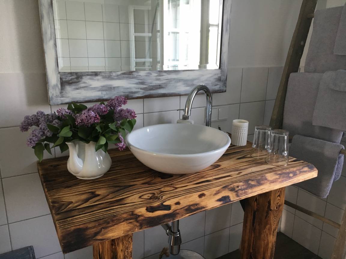 Restauriertes Presshaus / Weinkeller auf einem sehr naturbelassenen Bauerngehöft in malerischer Lage umgeben von Obstgarten, Weide, Wiesen Feldern, Teichen und Wald umsäumt. Die Einrichtung ist individualistisch in einem Mix aus Shabby-Chic, Landhausstil und bäuerlichen Elementen. Der Hof, von dem aus der Zugang in das eigene, freistehende Gebäude erfolgt ist mit Zaun eingefriedet (ca. 3.000qm Gartenfläche) und nicht befestigt - nur Wiesenfläche - und wird gemeinsam mit den Gastgebern benutzt.