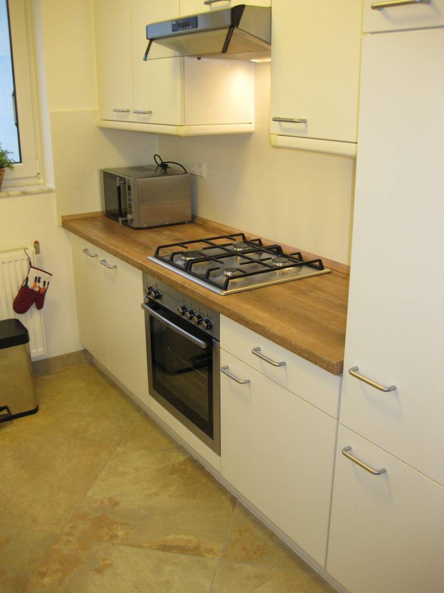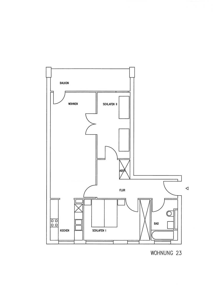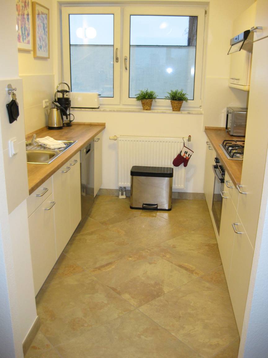 Die ruhig gelegene Wohnung bietet bis zu 5 Personen ausreichend Platz und teilt sich in einen Wohn-/ Schlafraum mit angrenzendem Küchenbereich, einem großen Schlafzimmer, einem kleinen Schlafzimmer, einen Flur und ein Badezimmer mit Dusche, Toilette und Waschbecken auf.