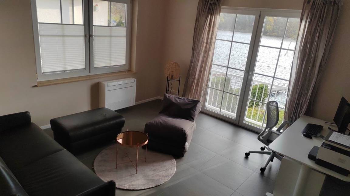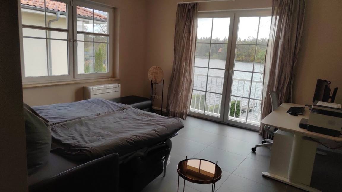 Das voll ausgestattete Arbeitszimmer mit Blick auf's Wasser und schnelles Internet bieten ideale Bedingungen für Konzentration und Kreativität. Die großzügige Wohnfläche mit eigenem Garten, Terrasse und eigenem Zugang zum Wasser ermöglicht Freizeitspaß und Entspannung im eigenen Reich.