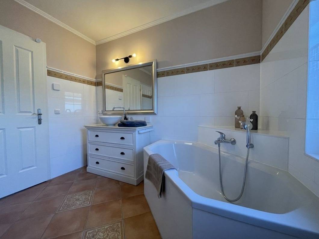 Das Haus ist modern, luftig und gemütlich eingerichtet - 112 m² zum Wohlfühlen. Der Fliesenboden bringt mediterranen Charme und ist dank Fußbodenheizung angenehm temperiert. Die Ausstattung ist hochwertig, so schlafen Sie z.B. in einem Boxspringbett, genießen Unterhaltung auf einem 70-Zoll-TV mit Soundsystem und arbeiten effizient an einem 34-Zoll Widescreen-Monitor.