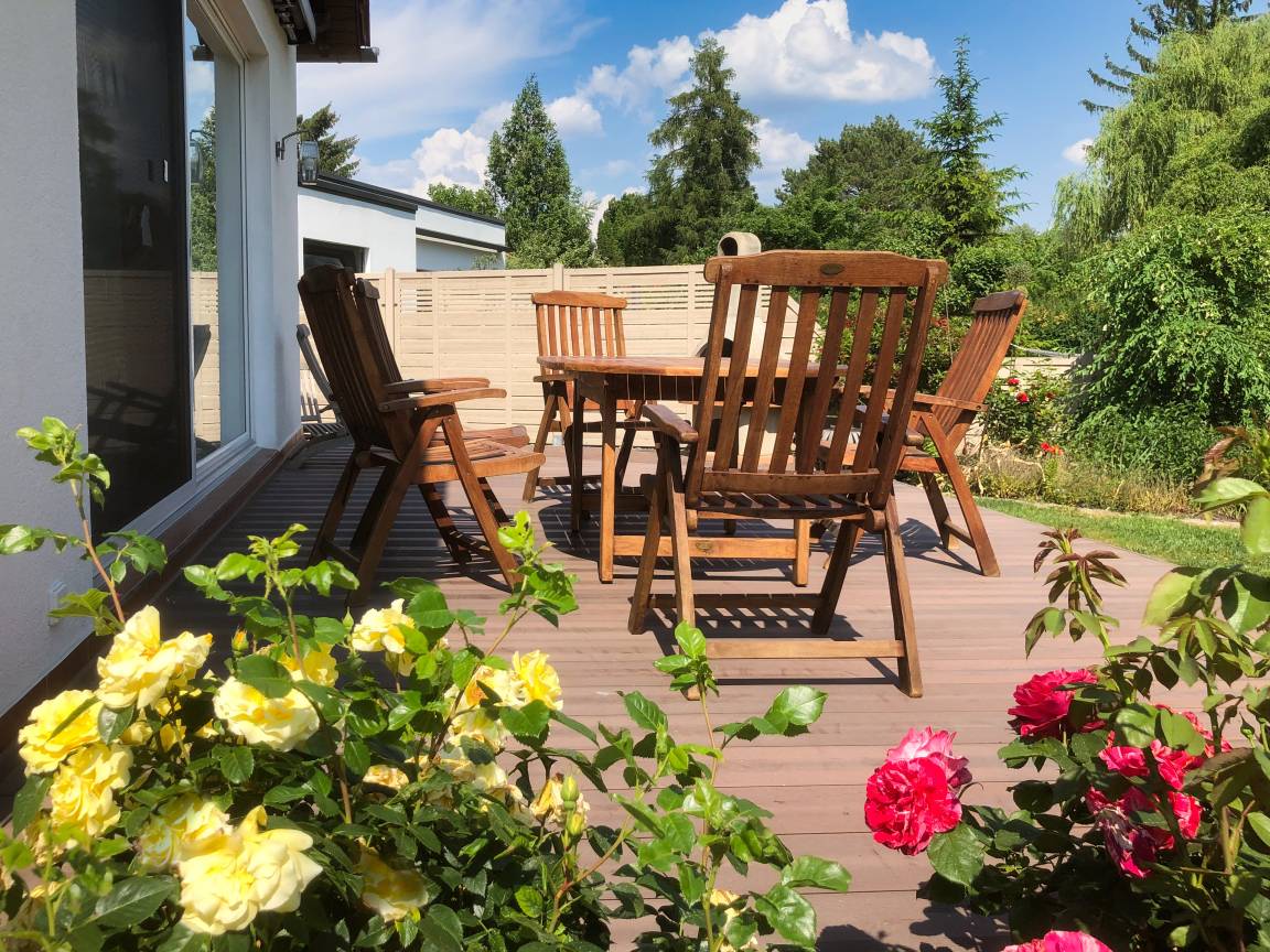 Entspannen Sie sich in dem 1000 qm großen parkähnlichen Garten und am kleinen Bootshafen.