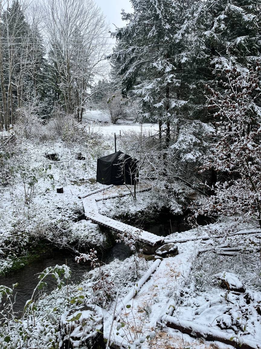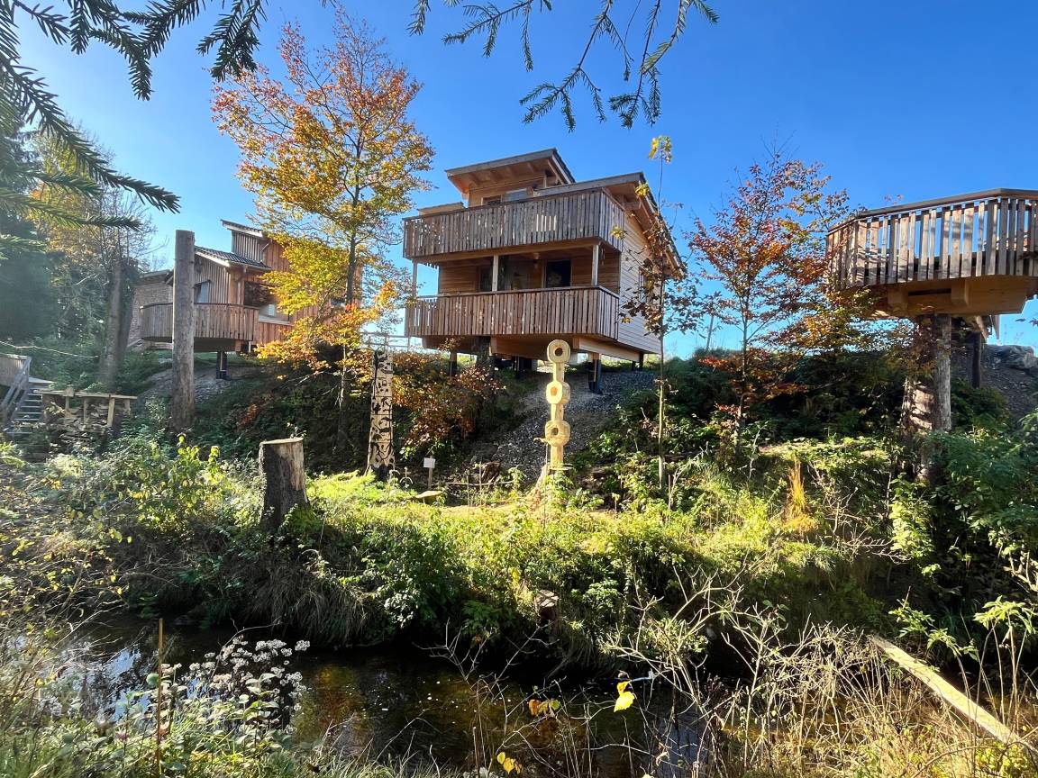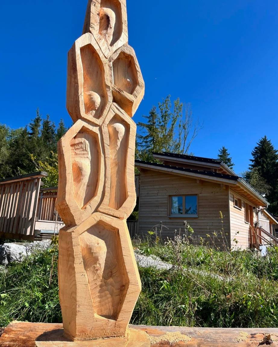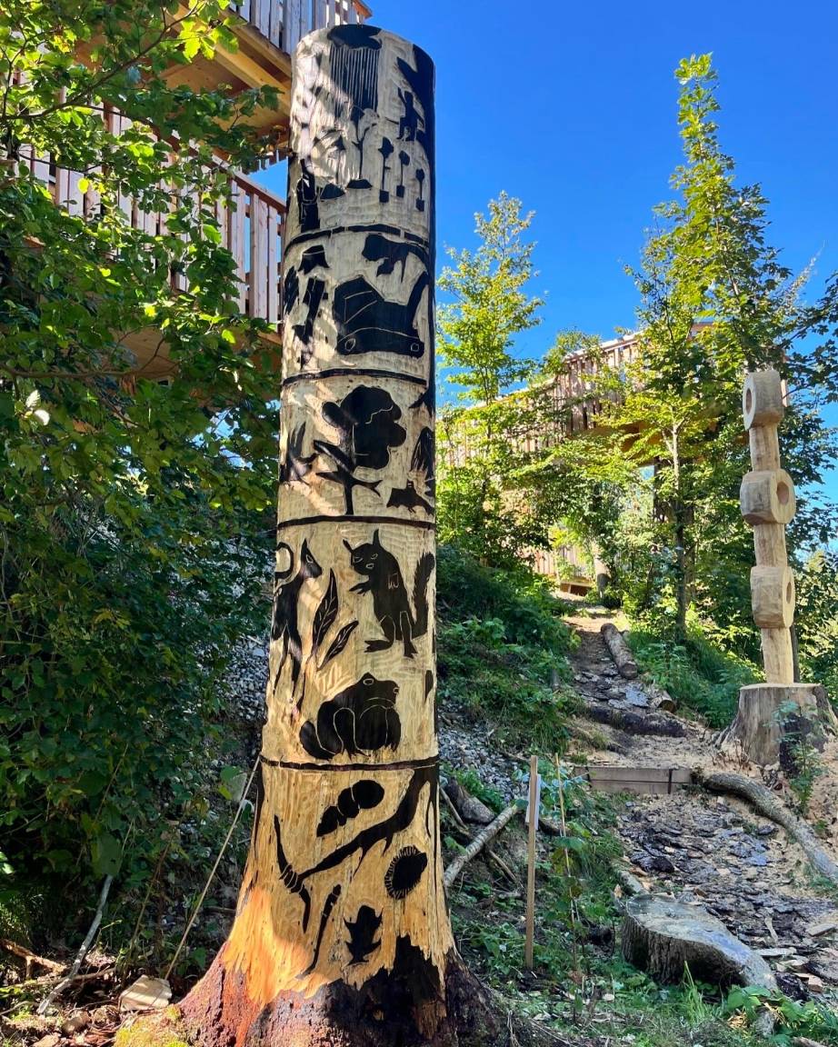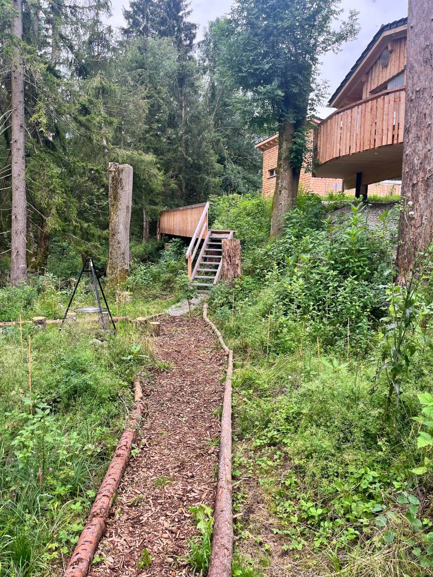 Mensch und Natur begegnen sich auf Augenhöhe. Die Entschleunigung beginnt bei der Anreise. Die letzten ca. 200m geht es vom Parkplatz zu Fuß und mit Leiterwagen zum Baumstelzenhaus. Dort erwarten Dich eine Blüh- und Streuobstwiese, ein neu gepflanzter Wald aus teilweise noch sehr kleinen, heimischen und fremdländischen Gehölzen, ein Bach mit Steg, zwei Baumkanzeln und mittendrin drei Baumstelzenhäuser. Über die Straße befindet sich der Haslacher (Bade)See am Auerberg (1055m).