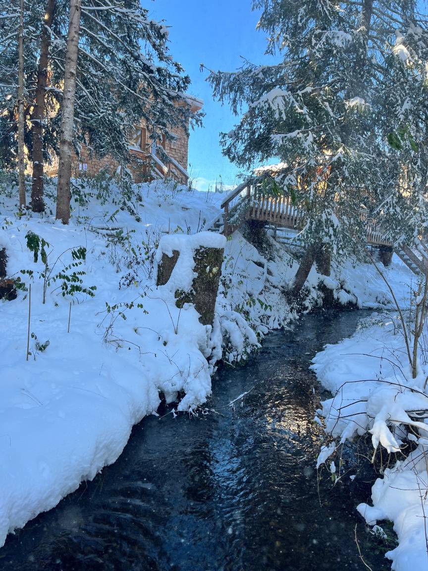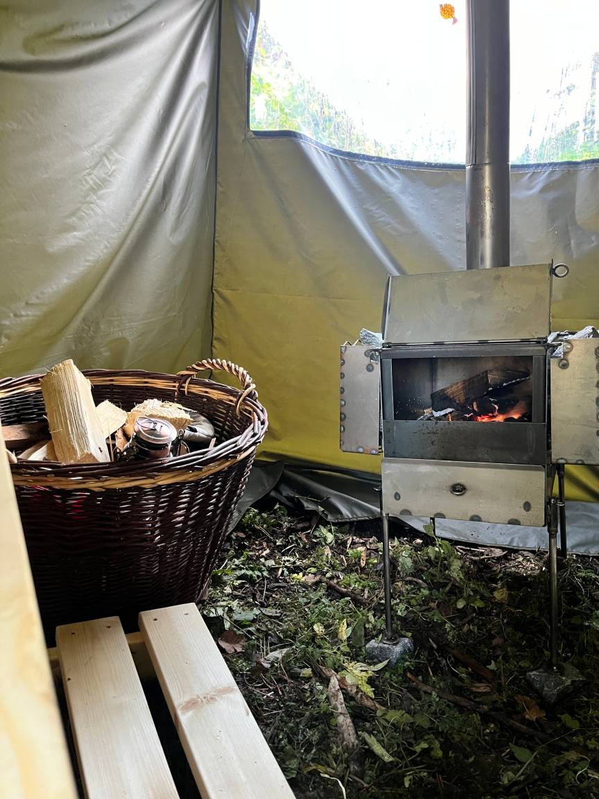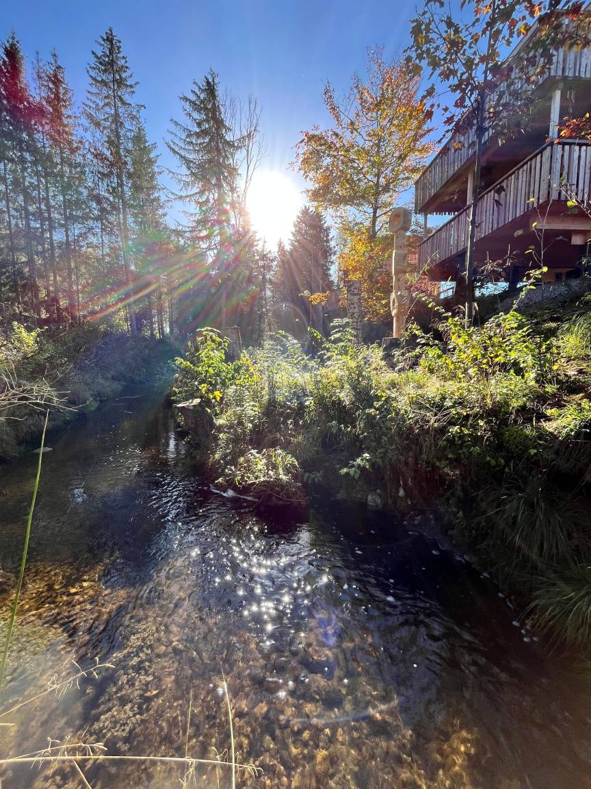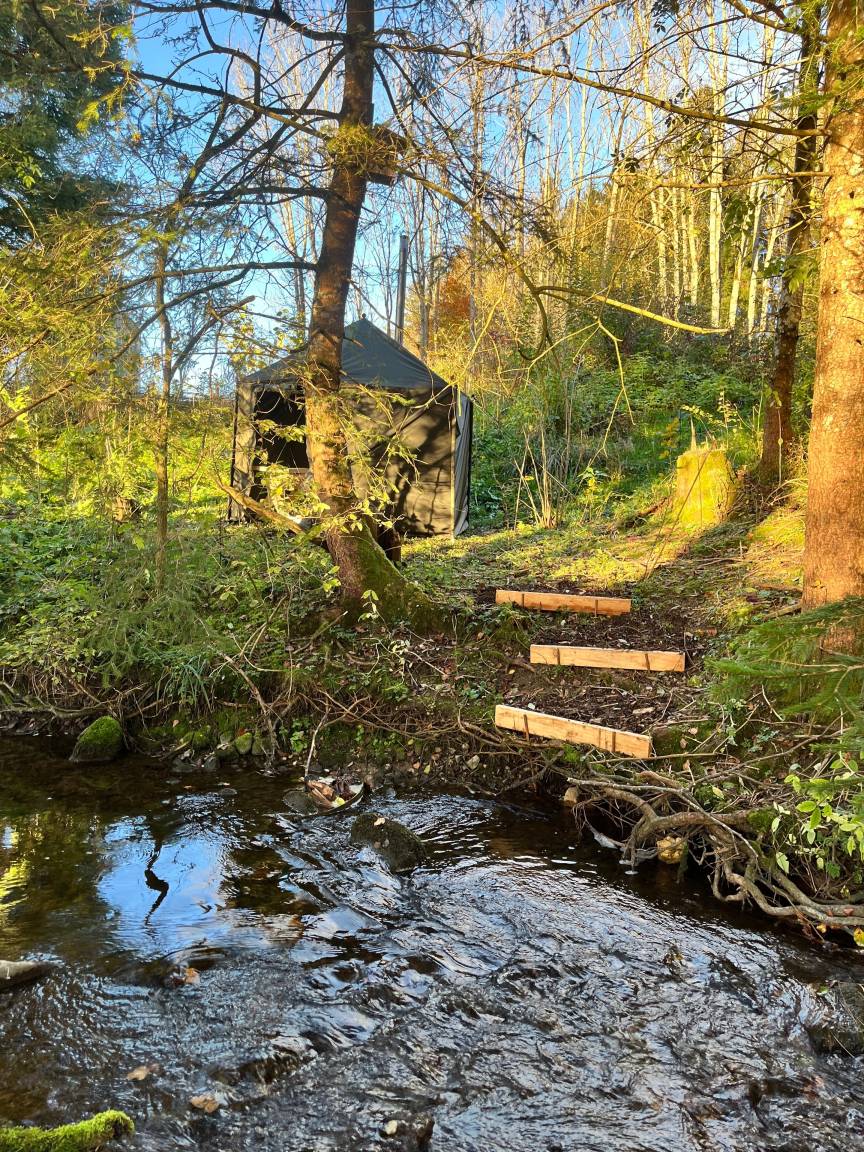 Das Baumstelzenhaus ist 2024 in nachhaltiger Holzständerbauweise gebaut, energetisch gedämmt, mit Fußbodenheizung und Solarstrom ganzjährig bewohnbar. Auf 25 qm fehlt es an nichts und beantwortet die Frage: Wieviel Platz braucht man eigentlich zum Leben. Voll ausgestattete Tinyküche, 1 Schlafzimmer mit Doppelbett und optionalem Kinderreisebett, Bad mit Dusche und WC, ein großer Südbalkon mit Bergblick. Kleine Besonderheit: Eine estländische Zeltsauna versteckt sich im Wald direkt am Bach. Mit Holzofen. Rustikal.