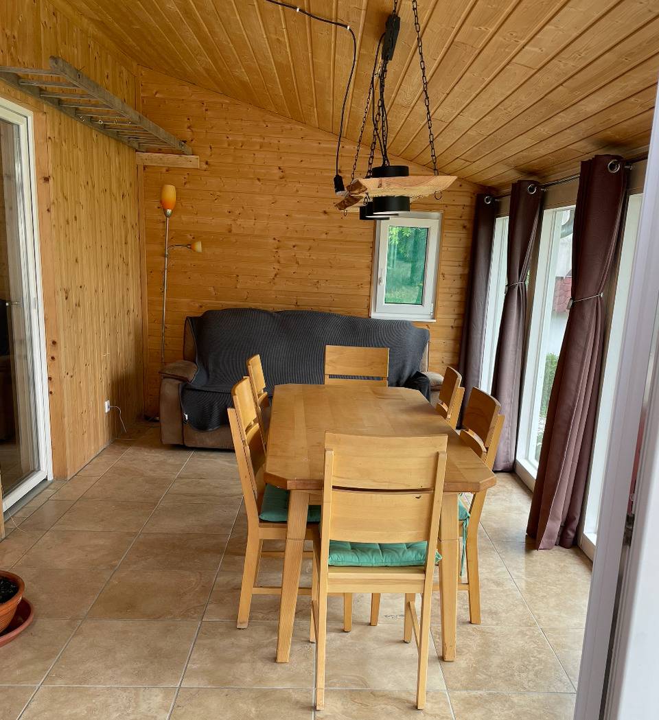 Gemütliches Massivholzhaus mit Garten und Platz für bis zu 6 Personen. Der Garten grenzt an ein kleines Bächlein und ein Naturschutzgebiet. Zum Ortszentrum von Bernbeuren sind es nur etwa 500 Meter.