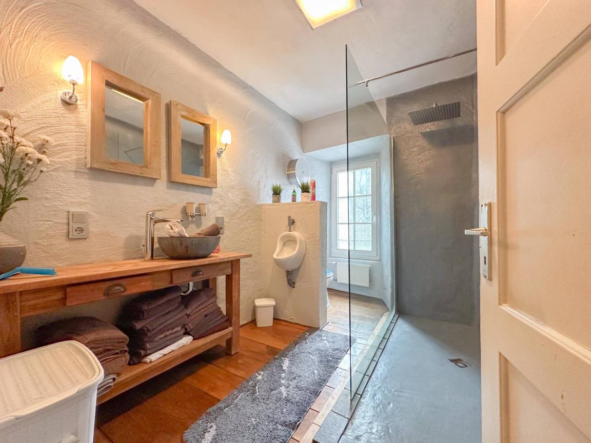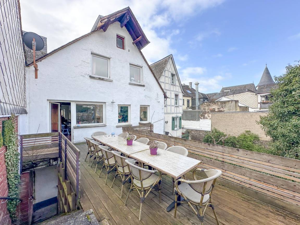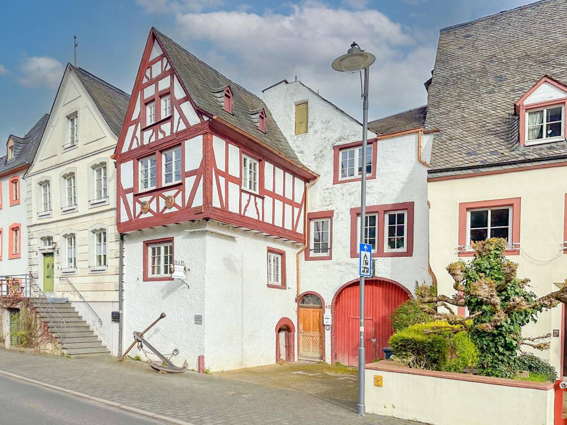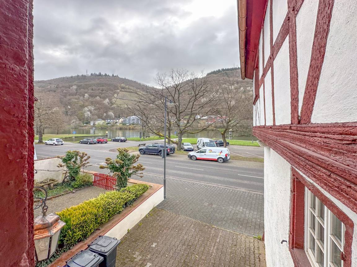 Hausbeschreibung : Dieses idyllische Fachwerkhaus liegt direkt an der Mosel und verbindet historischen Charme mit modernem Komfort. Der ursprüngliche Charakter bleibt erhalten, ergänzt durch luxuriöse Bäder und eine voll ausgestattete Küche. Die Gastgeberin sorgt mit viel Liebe zum Detail für eine gemütliche, stimmungsvolle Einrichtung und hohen Komfort. Ein Innenhof, eine überdachte Dachterrasse sowie Parkplätze in unmittelbarer Nähe zur Mosel vervollständigen das Gesamtbild