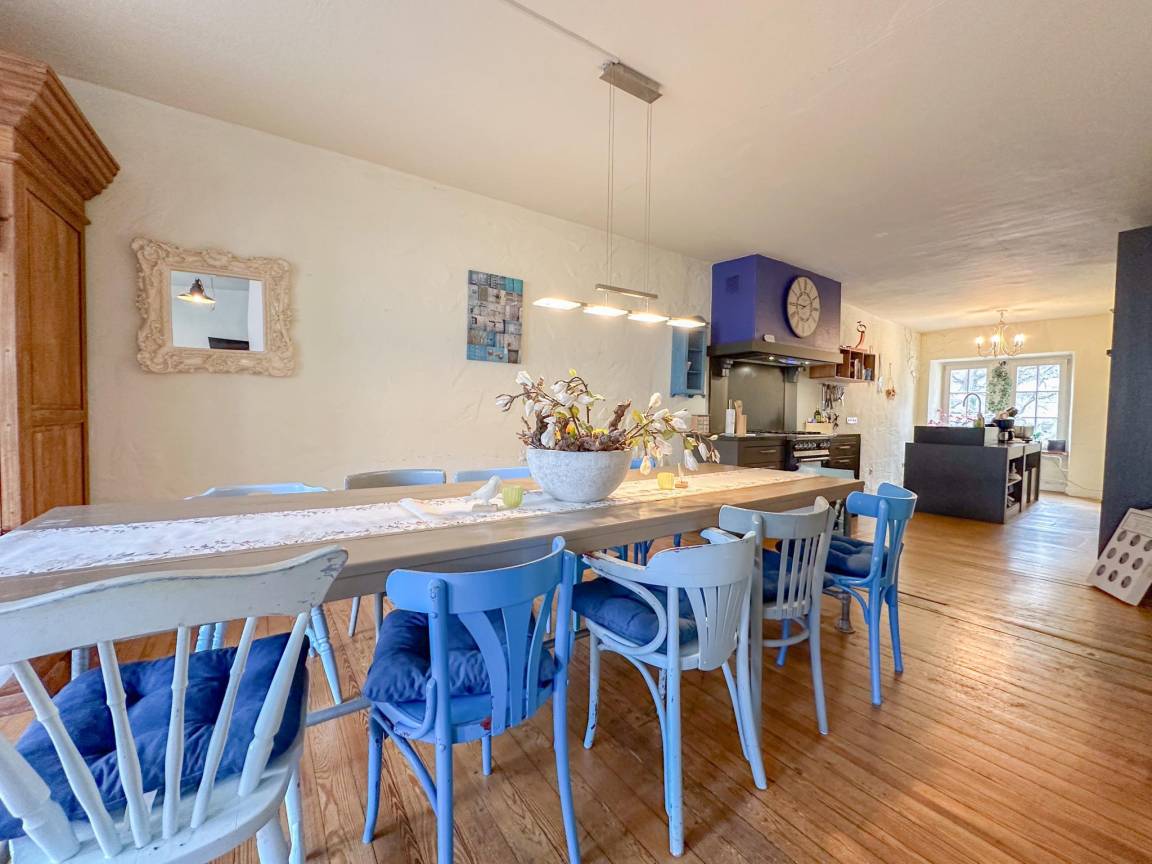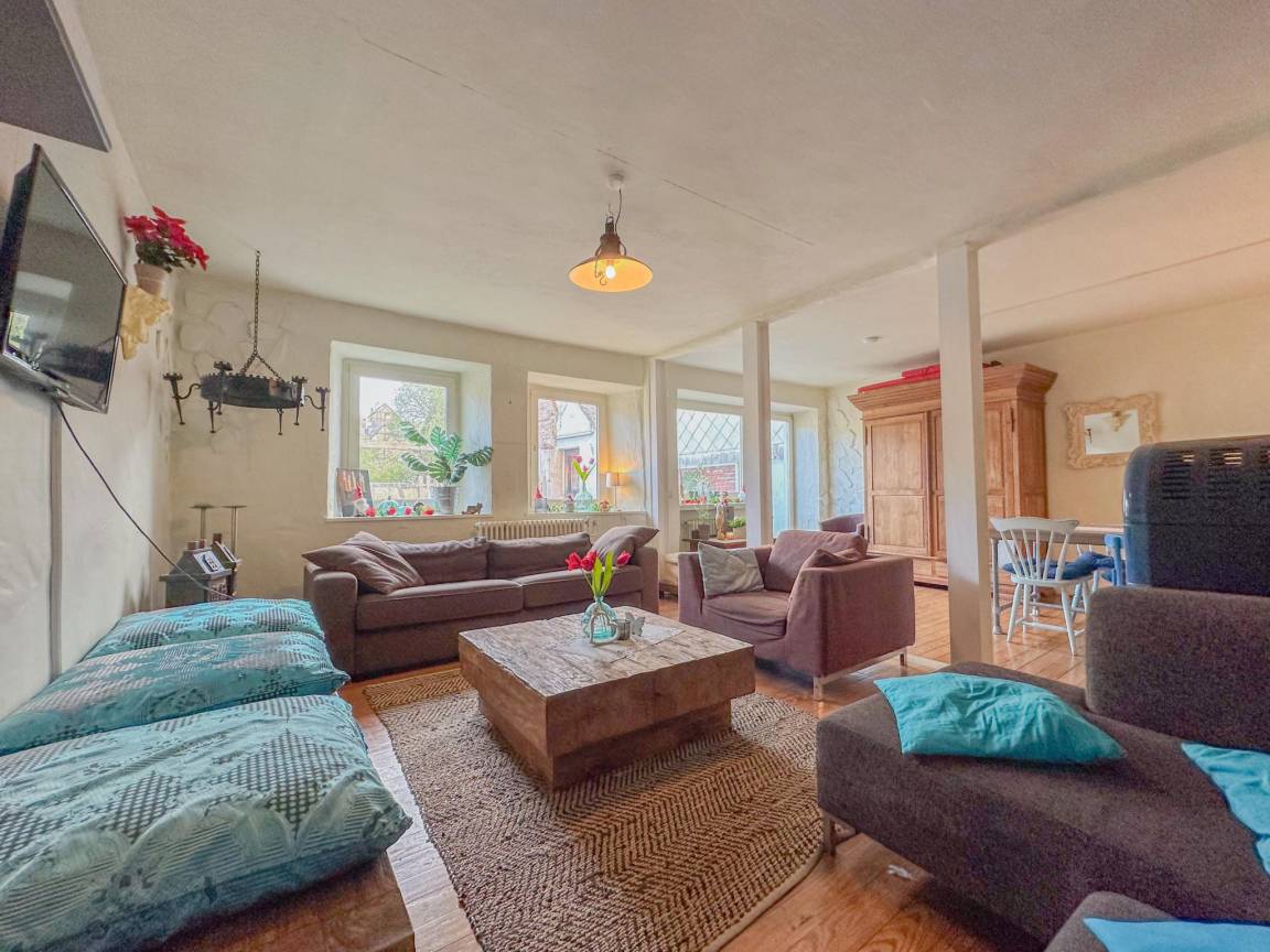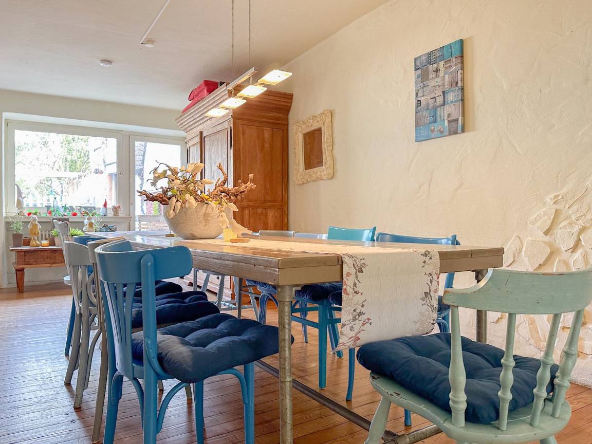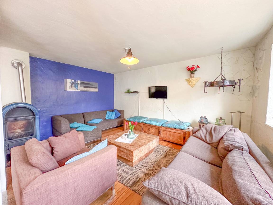 In der 1. Etage: Eingang, Wohnzimmer mit TV, Ofen(Gas), Sitzecke , Esszimmer mit Esstisch , 2x offene Küche mit Wasserkocher, Kochherd, Dunstabzugshaube, Kaffeemaschine(Filter, pads), Backofen, Mikrowelle, Geschirrspüler, Kühlschrank, Tiefkühlschrank , Badezimmer mit Dusche, 2x Waschbecken, Toilette, Urinal , Dachterasse
