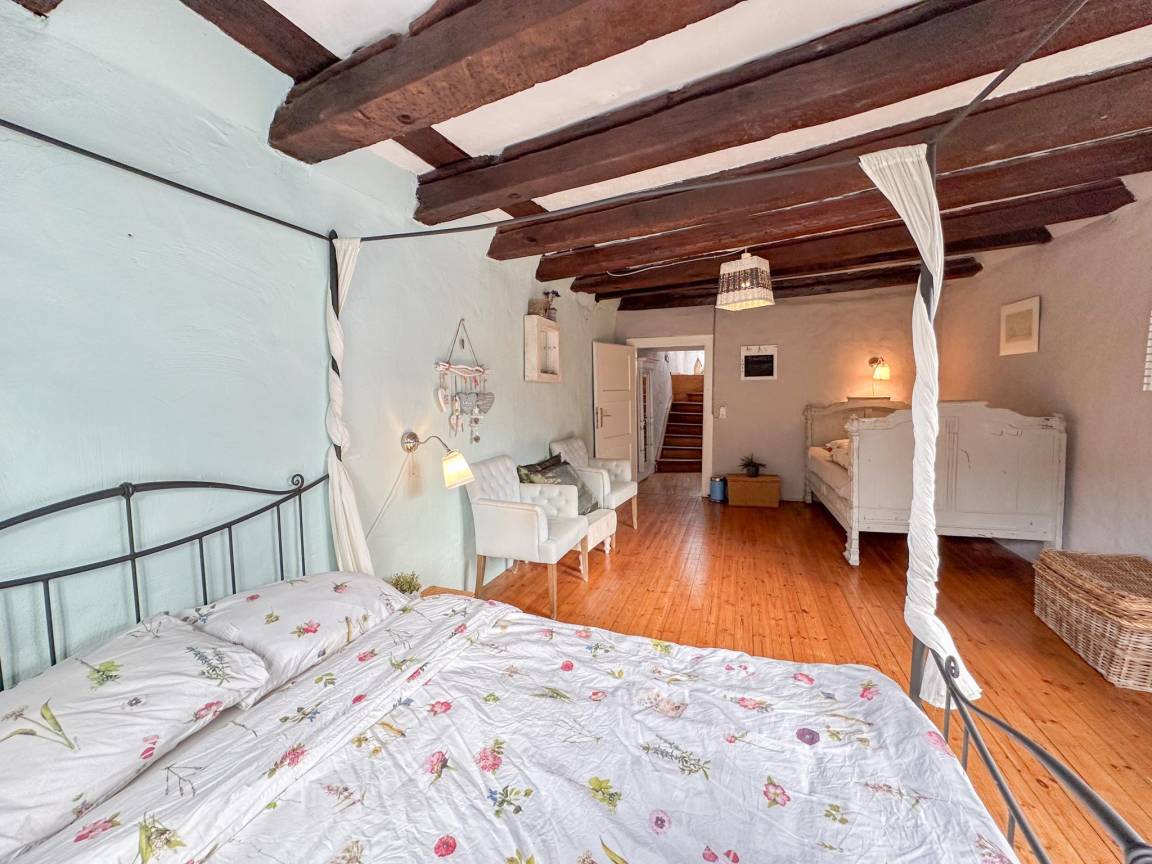 In der 2. Etage: Schlafzimmer mit Doppelbett, Französisches Bett