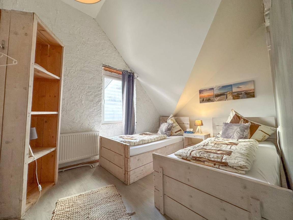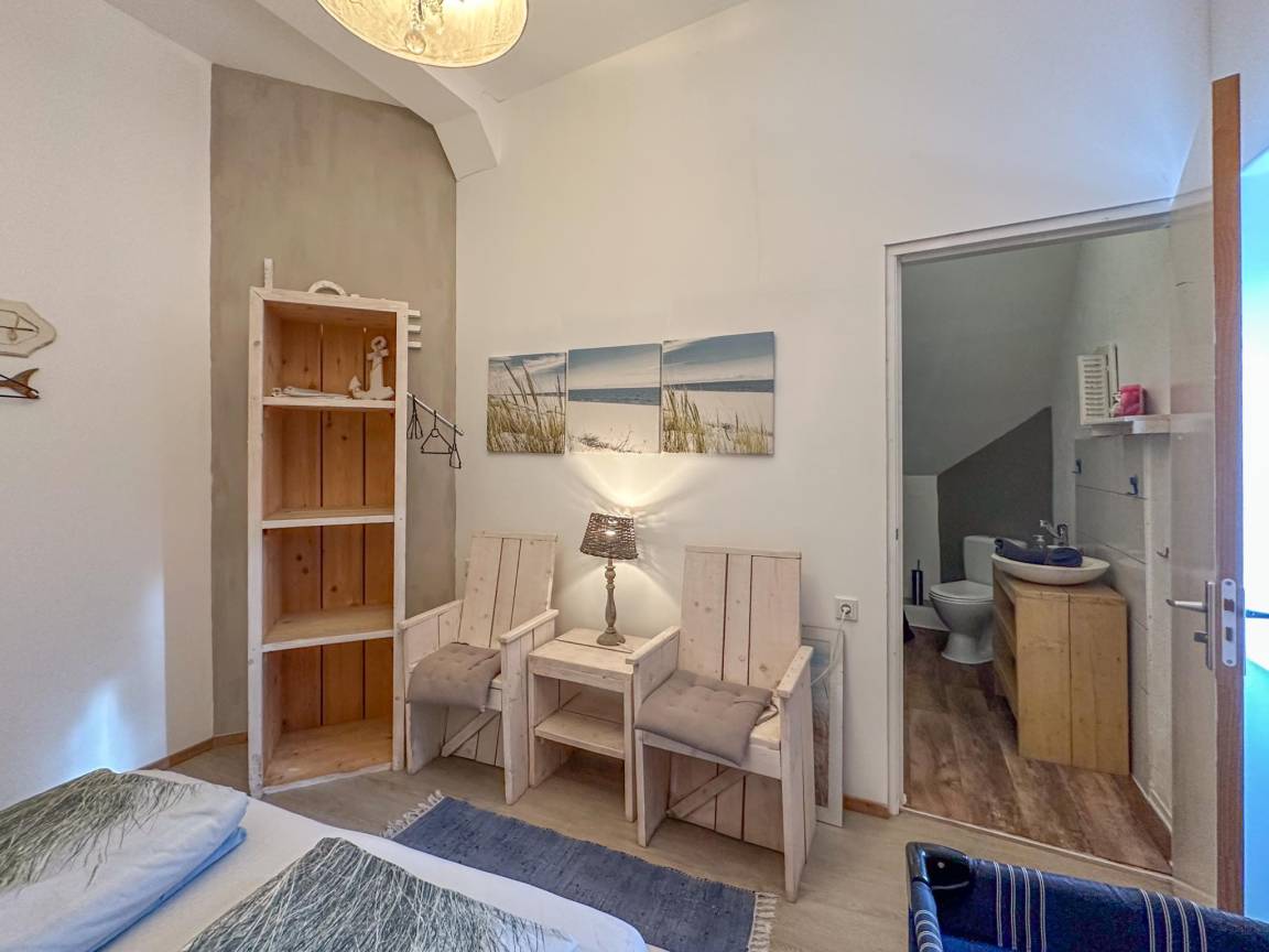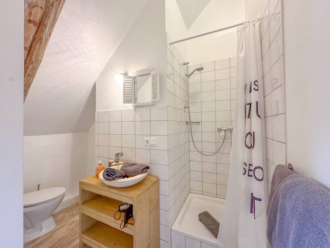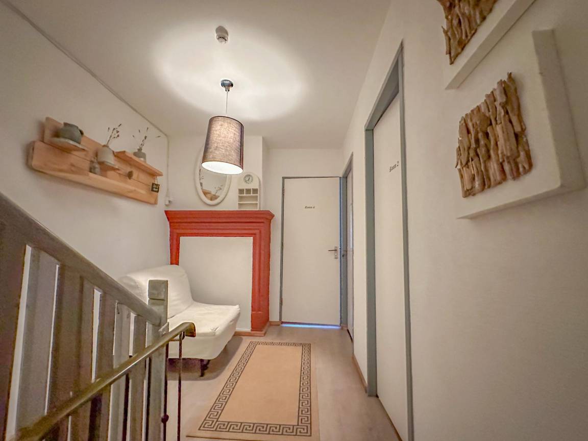 In der 1. Etage: Esszimmer mit Esstisch , offene Küche mit Wasserkocher, Dunstabzugshaube, Kaffeemaschine(Filter, pads), Backofen, Mikrowelle, Mikrowelle, Geschirrspüler, Kühl-/Gefrierkombination , Schlafzimmer mit Badezimmer mit Doppelbett, Badewanne, Dusche, Waschbecken, Toilette