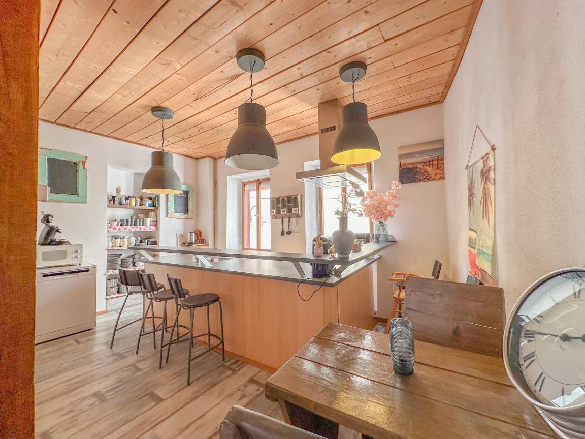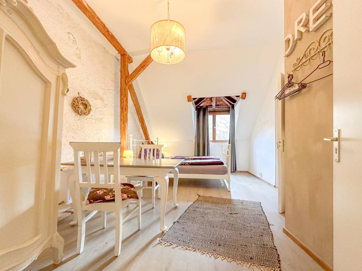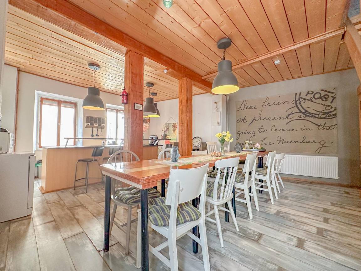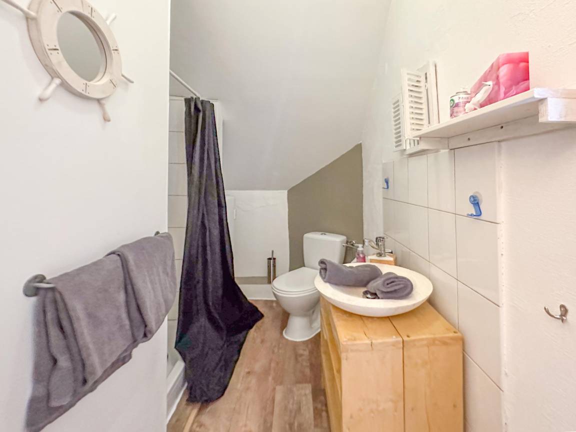 In der 1. Etage: Esszimmer mit Esstisch , offene Küche mit Wasserkocher, Dunstabzugshaube, Kaffeemaschine(Filter, pads), Backofen, Mikrowelle, Mikrowelle, Geschirrspüler, Kühl-/Gefrierkombination , Schlafzimmer mit Badezimmer mit Doppelbett, Badewanne, Dusche, Waschbecken, Toilette