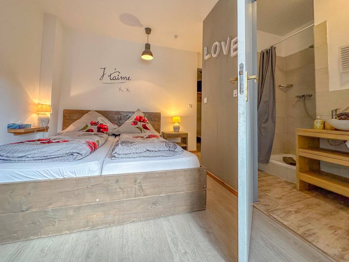 In der 2. Etage: 3x Schlafzimmer mit Badezimmer mit Doppelbett, Dusche, Waschbecken, Toilette , Flur
