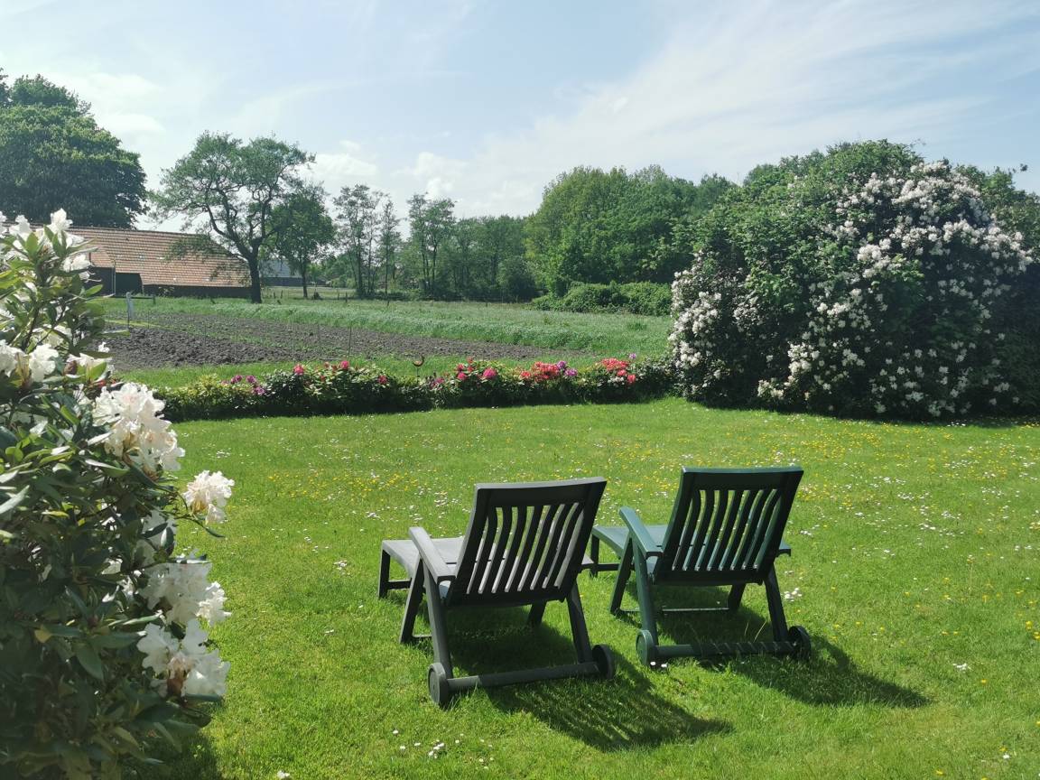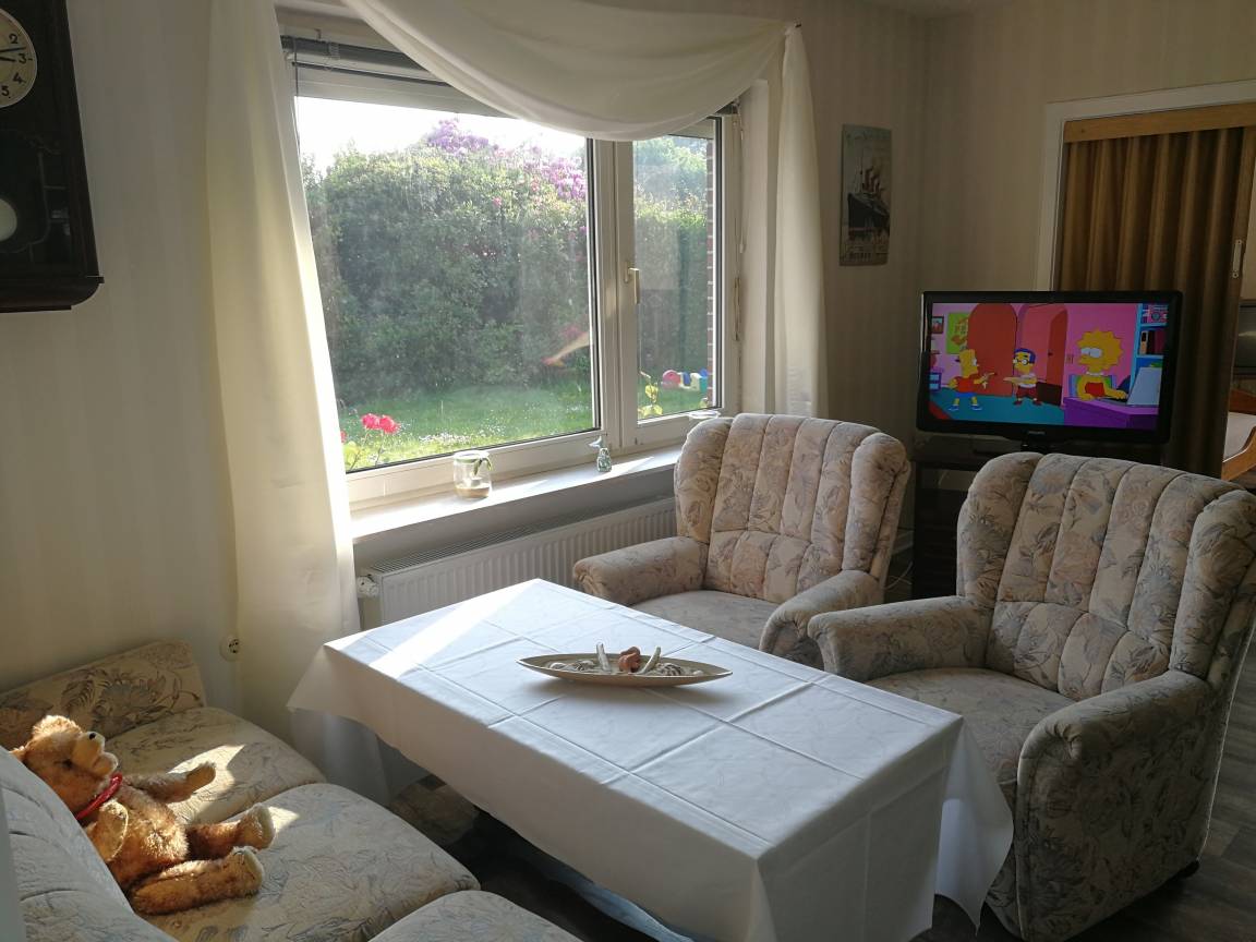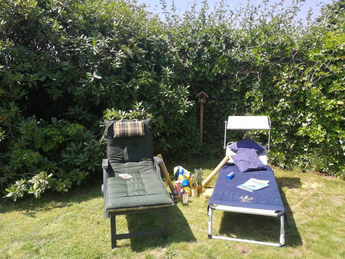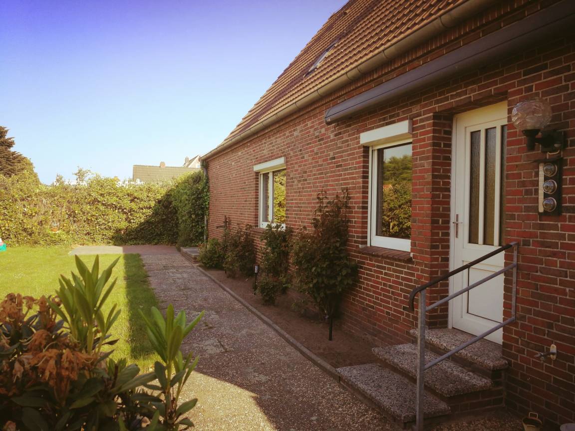 Helle, gemütliche, frisch renovierte Ferienwohnung (85 qm) mit viel Platz und großem, eigenen Garten inklusive Strandkorb, Terrassenmöbel und Grill in ruhiger Lage zu vermieten. Natürlicher Sichtschutz durch hohes Grün, super Privatsphäre!