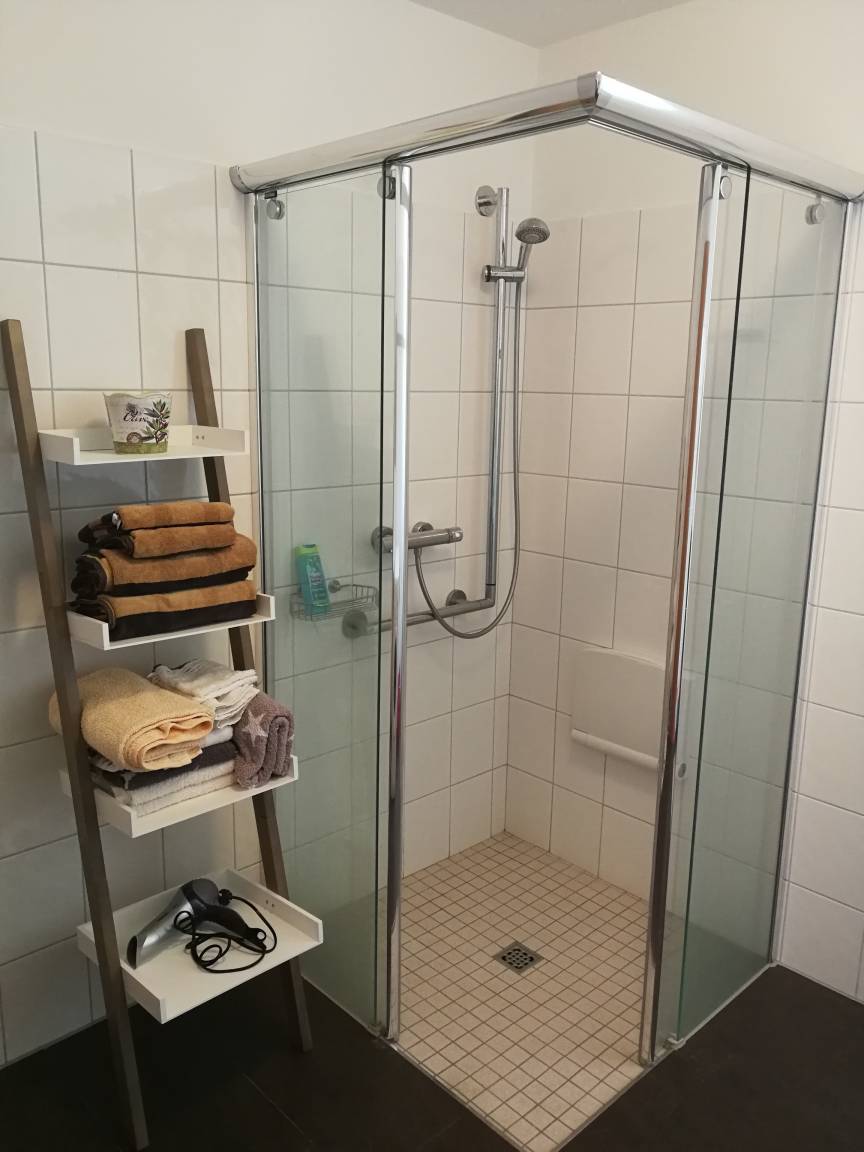 Die Wohnung samt Eingangsbereich ist komplett separat und der Garten von den Seiten uneinsehbar und nach vorne weiten Panoramablick auf Wiese und Pferde.