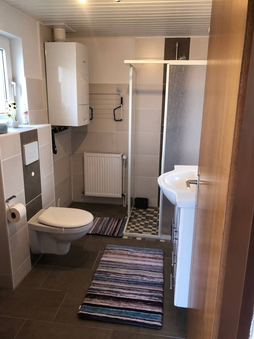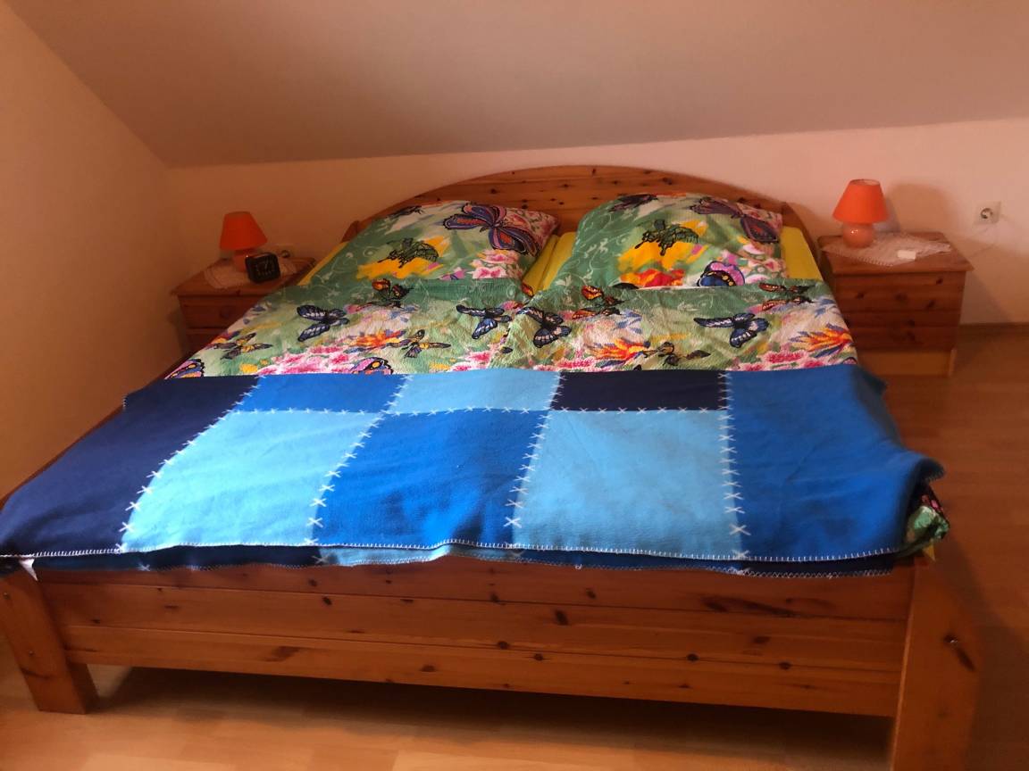 Im Obergeschoß des Hauses befinden sich 2 geräumige Schlafzimmer (Doppelzimmer mit Kinderbett, 3-Bett-Zimmer).