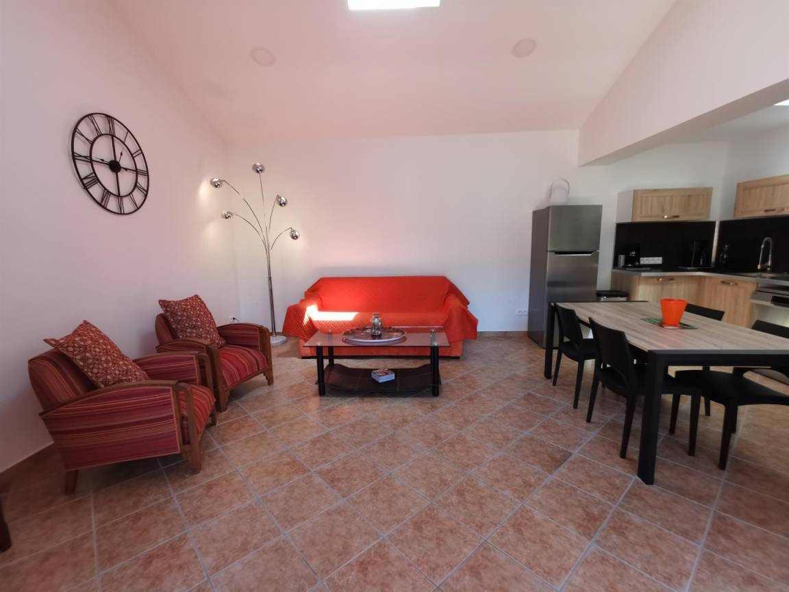 „The accommodation was as describedThe apartment was big enough for 2 couples to enjoy. The terrace overlooking the garden was lovely and we enjoyed our evenings eating drinking and just enjoying the atmosphere Our hosts were always available and immediately sorted one or two difficulties thar aroseSituated in a small town it has easy access to the coast and to the mountains and gorgesThe town itself has many facilities including good restaurants and a Sunday marketThe family have a number of pets and may not be suitable for those who do not like dogs - both dogs are gentle and friendlyOverall an excellent apartment well run by the family in a beautiful part of France“