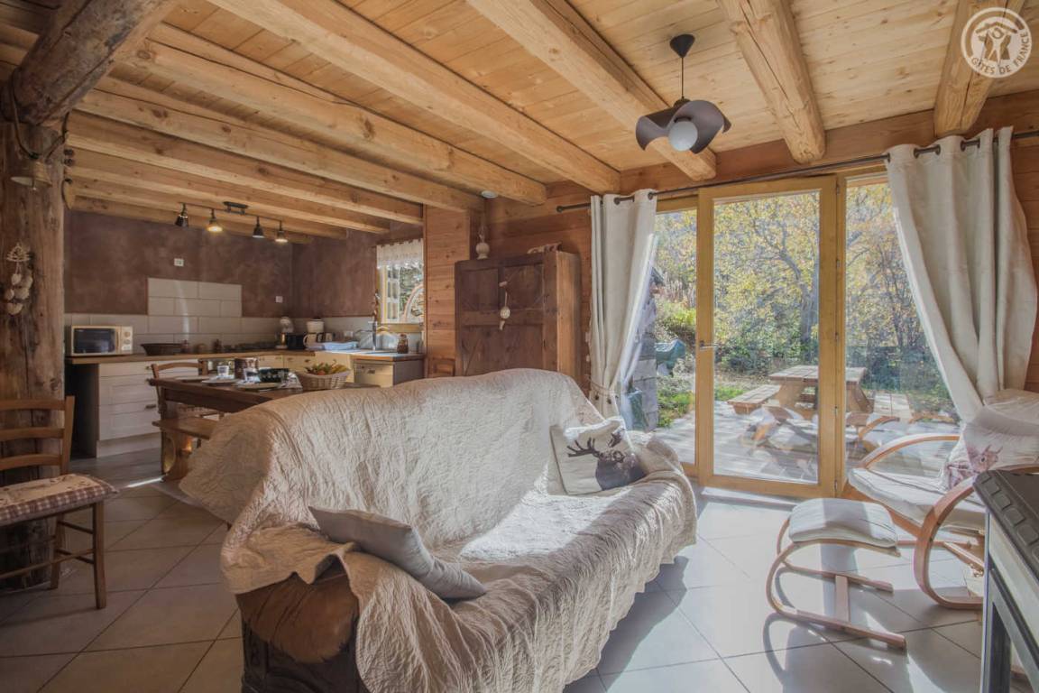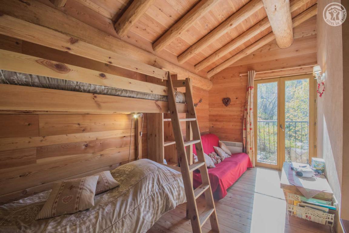 Einfamilienhaus auf 2 Ebenen. Erdgeschoss: Eingangshalle, Wohnzimmer-Küchen-Loungebereich, Badezimmer (Dusche), separates WC. 1. Stock: 2 Schlafzimmer (1 Doppelbett 160 x 200 cm / 1 Doppelbett 140 x 190 cm), ein Schlafzimmer (4 Etagenbetten), ein Duschbad mit WC. Waschtrockner (kombiniert). Holzdeck. Kleiner Garten. Öffentliche Parkplätze auf dem Platz vor der Hütte.