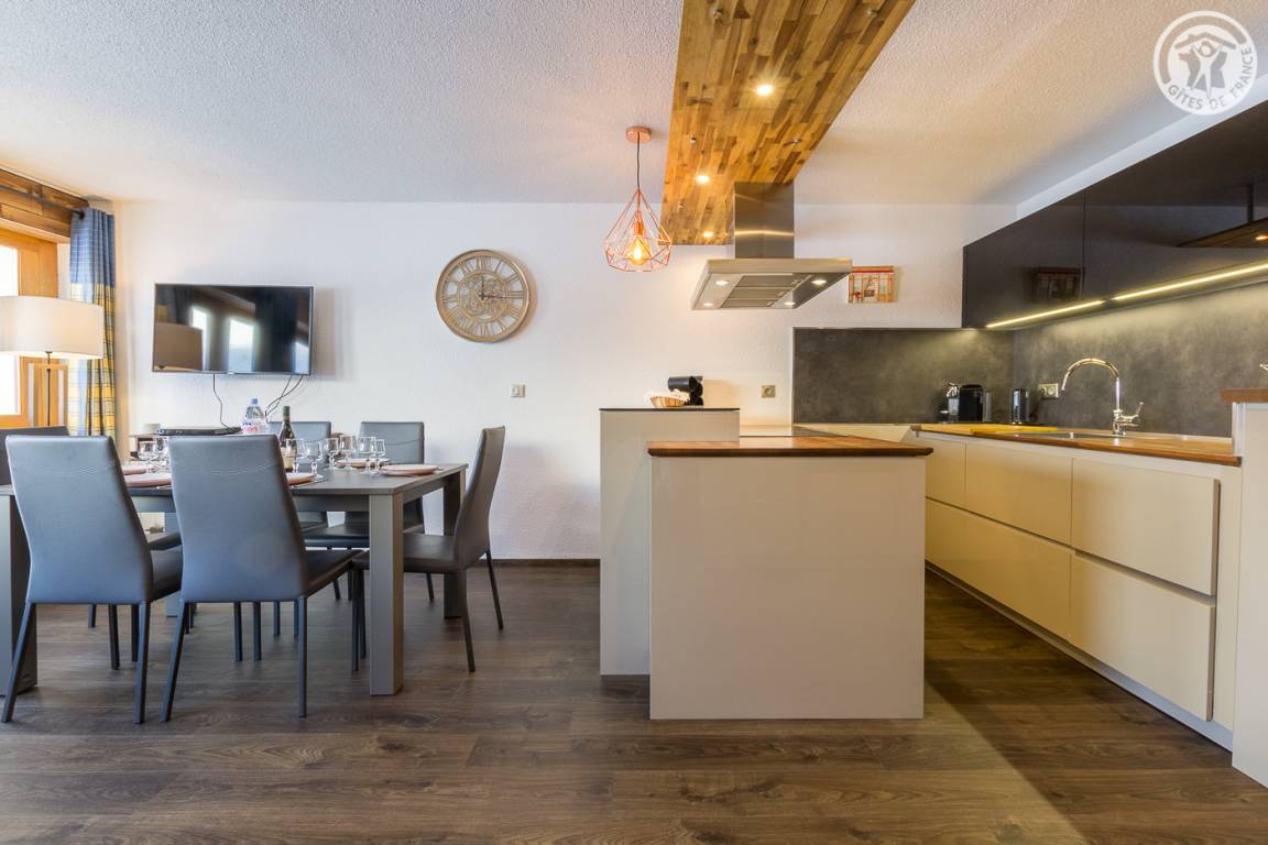 Entdecken Sie am Ausgang des Dorfes Bessans die Hameaux de la Neige, wo das Albaron Sie zu einem persönlichen Aufenthalt mit der nordischen Hochebene von Bessans empfängt. Dieser moderne und warme Kokon ist eine clevere Mischung aus Bergcharakter und funktioneller Ausstattung.