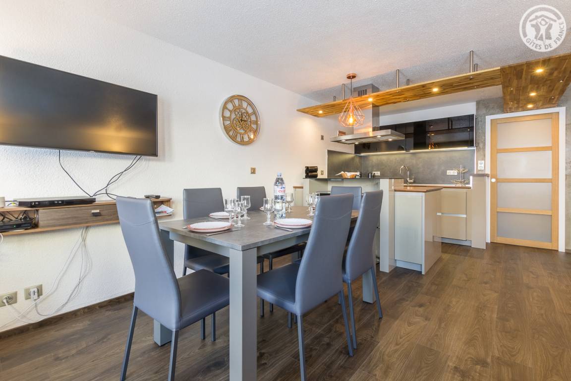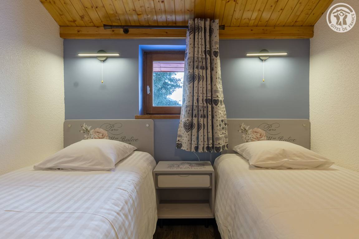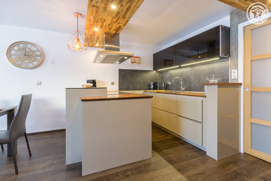 Gîte im 1. Stock einer Residenz mit 60 Wohnungen, mit Blick auf die Langlaufloipen, nicht zu übersehen. Wohnküche-Wohnbereich mit kleinem Balkon, 3 Schlafzimmer (1 Doppelbett 160x200 cm / 1 Doppelbett 160x200 cm / 2 Einzelbetten 90x190 cm), Duschbad (Dusche und WC), WC. Geschlossene Garage (Möglichkeit zum Abstellen von Fahrrädern dort, Steckdose zum Aufladen von Elektrofahrzeugen), Skiraum.