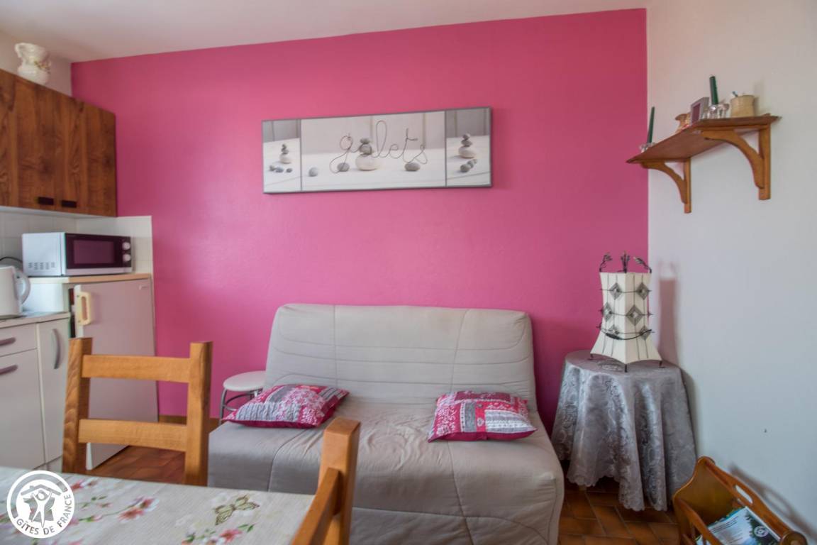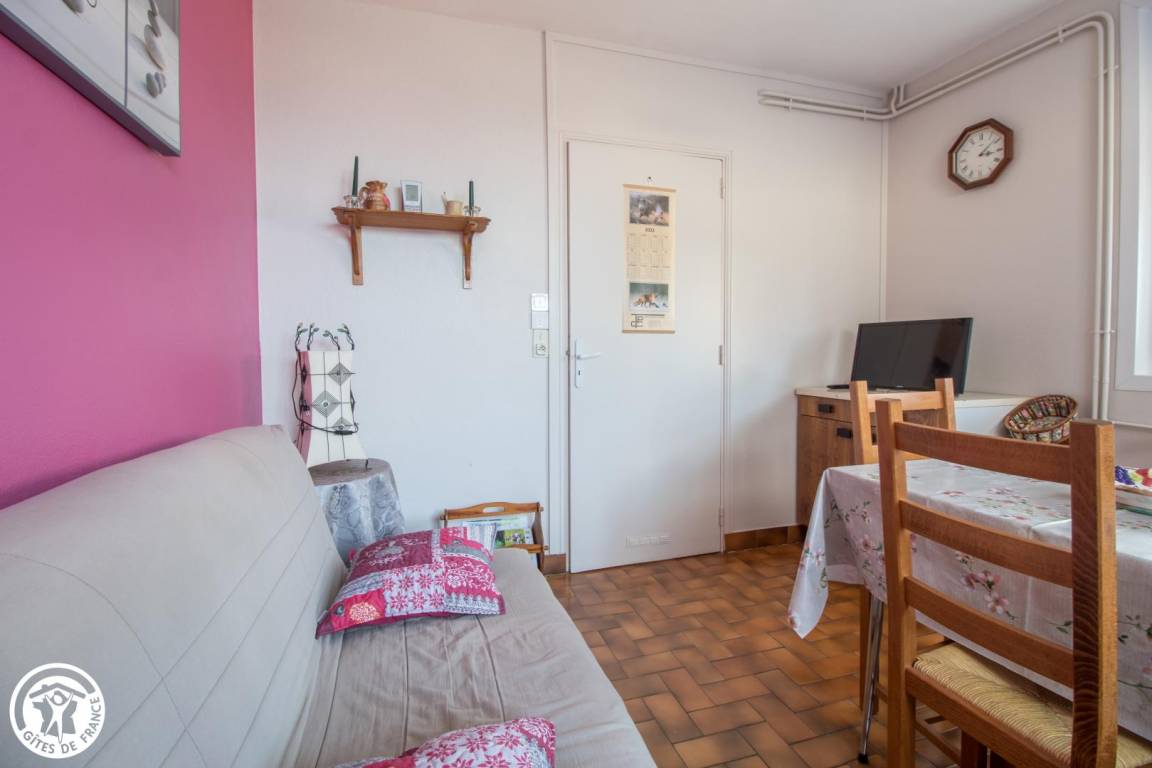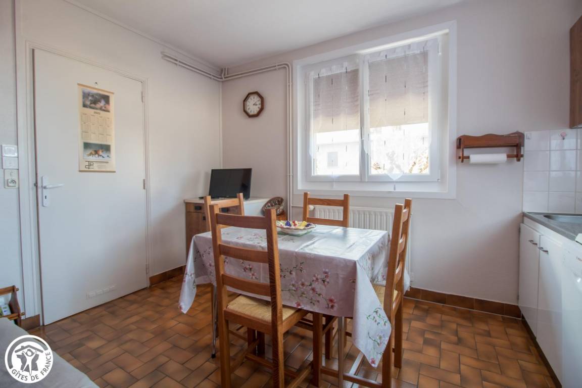 „La pièce de vie (le salon) qui est en l'occurrence la cuisine est très petite. Le canapé 2 places très raide et lorsque vous regardez la télévision, vous avez la porte devant. Toutes les autres pièces sont confortables. En hiver, on est plus dans la pièce de vie le soir, qu'ailleurs.“