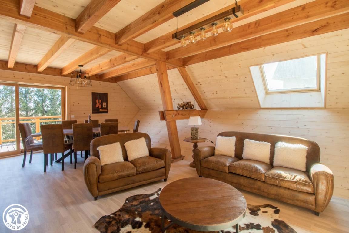 „Chalet très bien pensé grande qualité des équipements. Déco très agréable. Équipement de loisir jacuzzi. Ping pong baby-foot très utiles..parfait pour accueillir une famille inter generationelle“