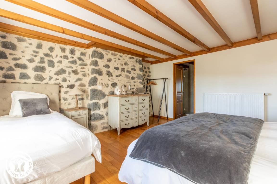 „Un superbe séjour dans un gîte spacieux, confortable, décoré avec beaucoup de goût et pensé pour préserver l’intimité de chacun grâce aux salles de bains et wc privatifs pour chaque chambre. Le baby foot nous a fait passé de superbes moment aux petits comme aux grands, rappelant des souvenirs de papis qui ont partagé fous rires et discordes concernant le comptage des points. Un seul regret: Quitter le gîte au bout d’une semaine ! À bientôt, c’est sûr ! Ps: Et un grand merci pour le saint nectaire offert à notre arrivée !“