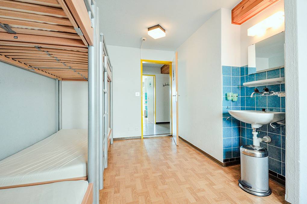 1. Etage: Aufenthaltsraum mit Sitzmöglichkeiten, Sat-TV, Balkon. Vier 4-Bettzimmer, jeweils mit zwei Etagenbetten, Wb. 6-Bettzimmer mit drei Etagenbetten, Du, Wb. Separates Bad: Du, 2 Wb, WC. Weiteres Bad: Du, Wb, 2 Pissoirs, WC.