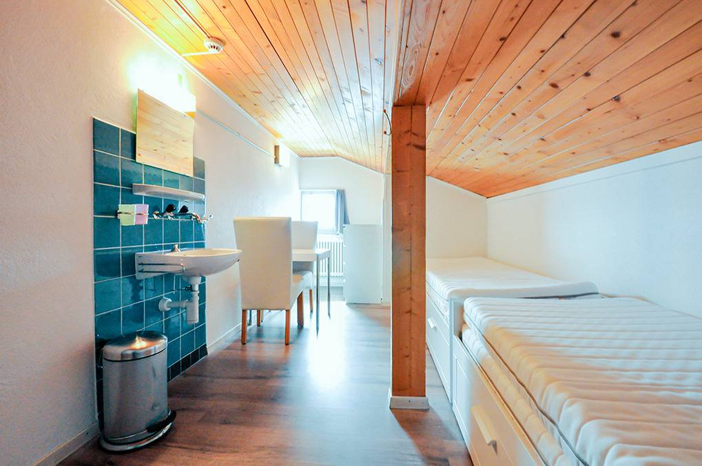 Dachgeschoss mit Schrägen: Zwei 2-Bettzimmer mit Einzelbetten, Wb. Einzelzimmer. Bad: Du, Wb, WC.