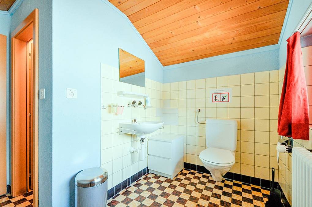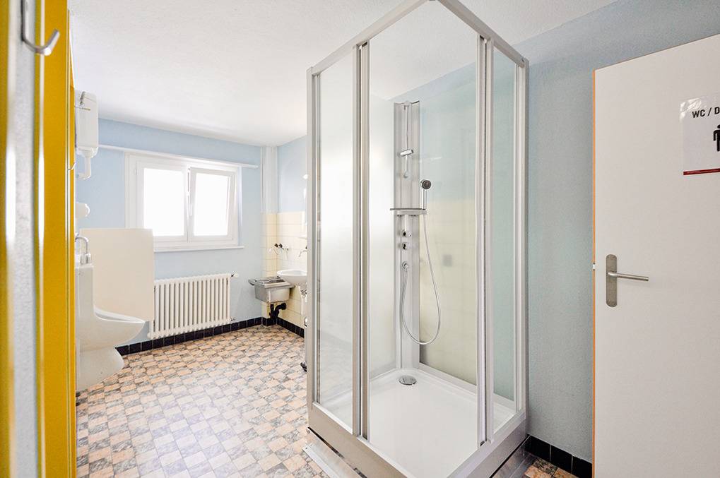 2. Etage: Sieben 4-Bettzimmer, jeweils mit zwei Etagenbetten, Wb. Separates Bad: 2 Du, 2 Wb, 2 WC. Weiteres Bad: 3 Du, 2 Wb, 2 Pissoirs, WC.