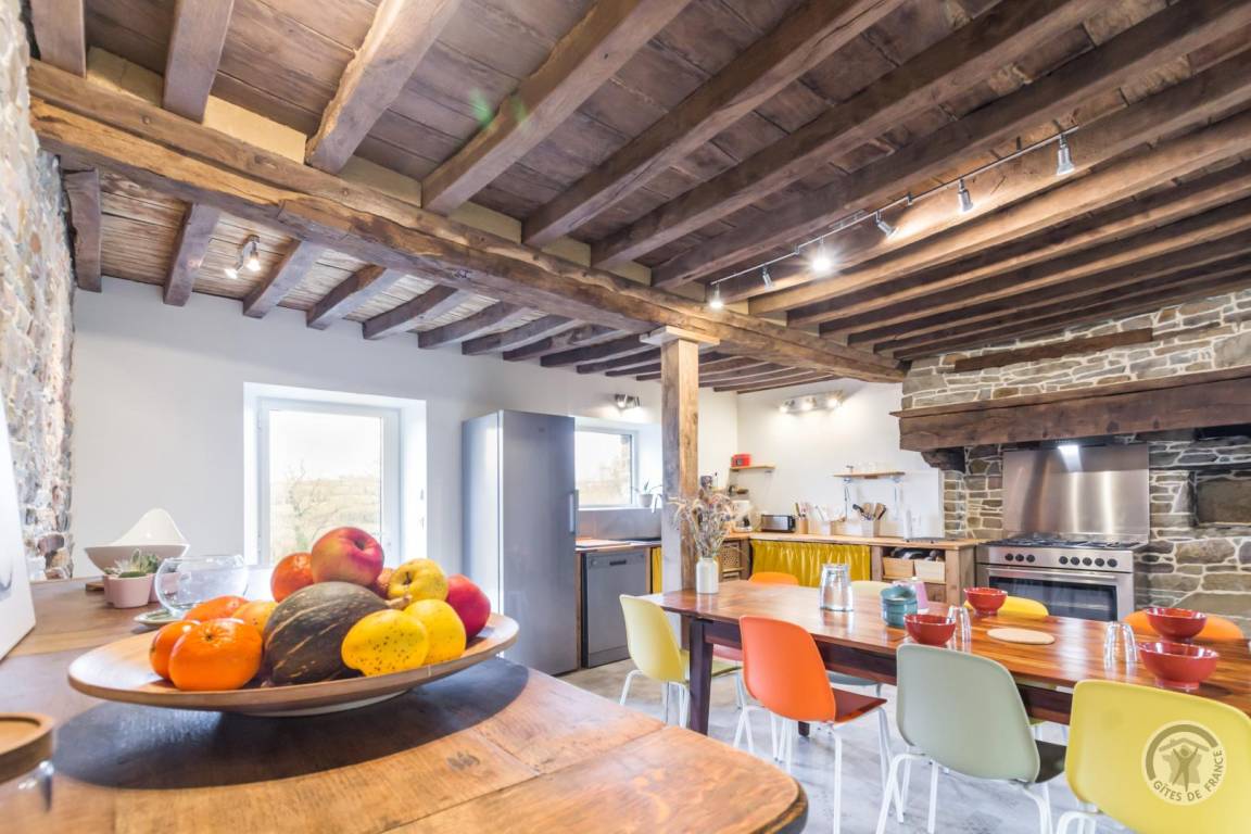„Le gîte est spacieux, encore plus que ce que rendent les photos et rénové avec goût. L'environnement est très agréable, offrant une vue magnifique et une grande tranquillité. Tous les espaces sont grands et lumineux. La cuisine est bien équipée. Le propriétaire est accueillant. Attention aux poutres pour les personnes de grande taille, notamment à l'étage et près de la cuisinière. Cependant, je trouve que le fait d'avoir à payer un petit supplément (très peu, mais quand même) en fin de séjour pour l'électricité est dommage. Cela est mentionné dans l'annonce et je suis d'accord avec le propriétaire sur le principe d'être économe avec sa consommation, mais je pense que le forfait de 8 kWh par jour est un peu sous-estimé pour la maison.“