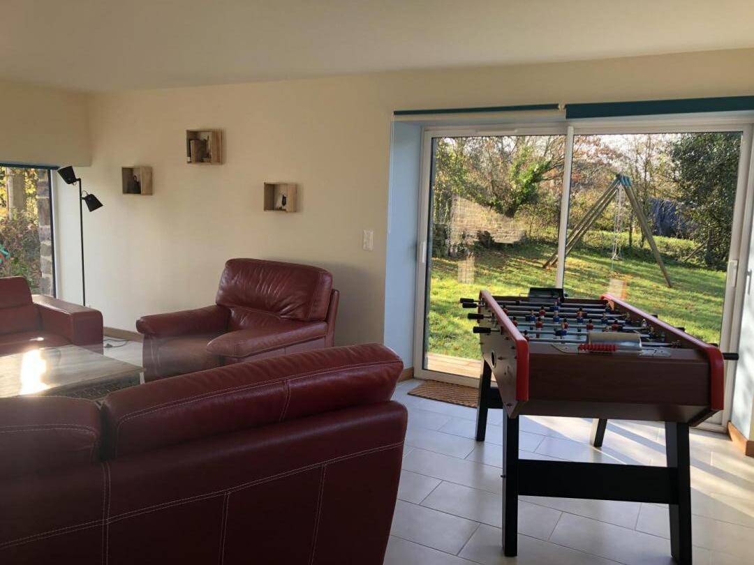 Freistehendes Haus. Wohnzimmer (TV, WLAN, Stereoanlage). Esszimmer mit Kochnische (Backofen, Geschirrspüler, großer Kühlschrank, Mikrowelle). Separates WC. Schlafzimmer 1 (1 Doppelbett 140x200 cm) mit eigenem Duschbad. Barrierefreier Zugang im Erdgeschoss. Waschküche (Waschmaschine, Trockner, Gefrierschrank). Im ersten Stock: Galerie mit Spielbereich, Schlafzimmer 2 (3 Einzelbetten 90x190 cm, 2 davon zusammengestellt) mit eigenem Duschbad, Schlafzimmer 3 (2 Einzelbetten 90x190 cm, zusammengestellt) mit Schreibtisch, Schlafzimmer 4 (1 Doppelbett 140x190 cm) mit Schreibtisch, Duschbad und separatem WC. Babyausstattung auf Anfrage. Bettwäsche und Handtücher können gemietet werden. Reinigungsservice gegen Aufpreis. Geothermieheizung inklusive. Privater, umzäunter Garten. Terrasse. Gartenmöbel. Grill. Bouleplatz. Schaukel. Garage. Unterstand. Parkplatz. Reiter willkommen. Haustiere sind nur im Erdgeschoss erlaubt. Eine Ladestation für Elektrofahrzeuge steht gegen Gebühr zur Verfügung.