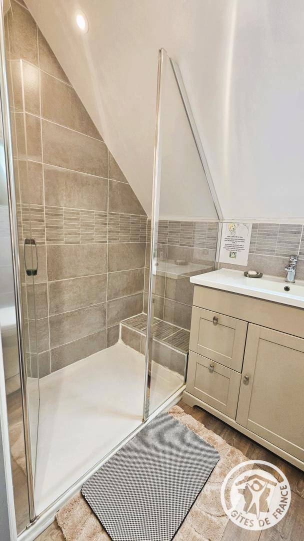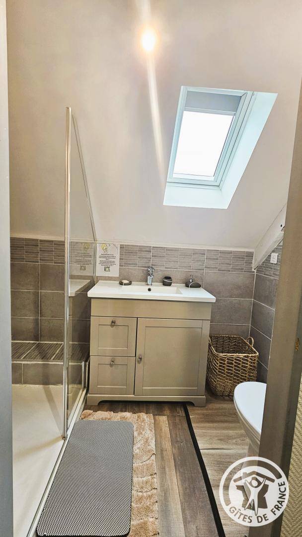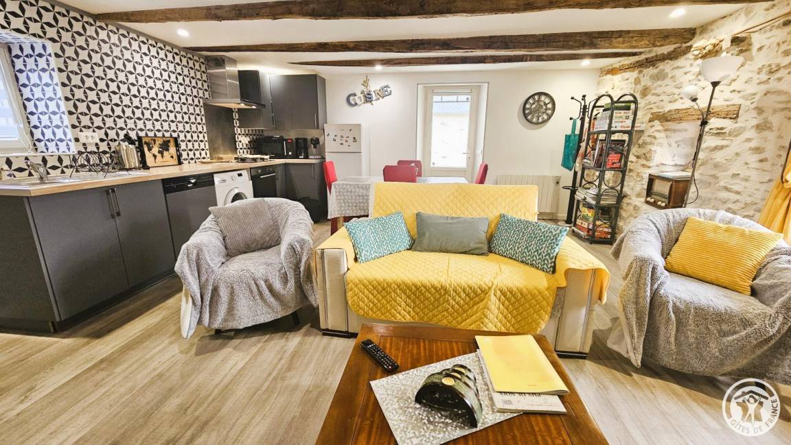 „Gite très agréable, proximité importante avec l'autre gîte pour les repas en terrasse, un seul WC à l'étage. Mauvais fonctionnement du lave vaisselle. Nous avons passé un agréable séjour. Merci au propriétaire pour ce petit geste au moment du départ.“