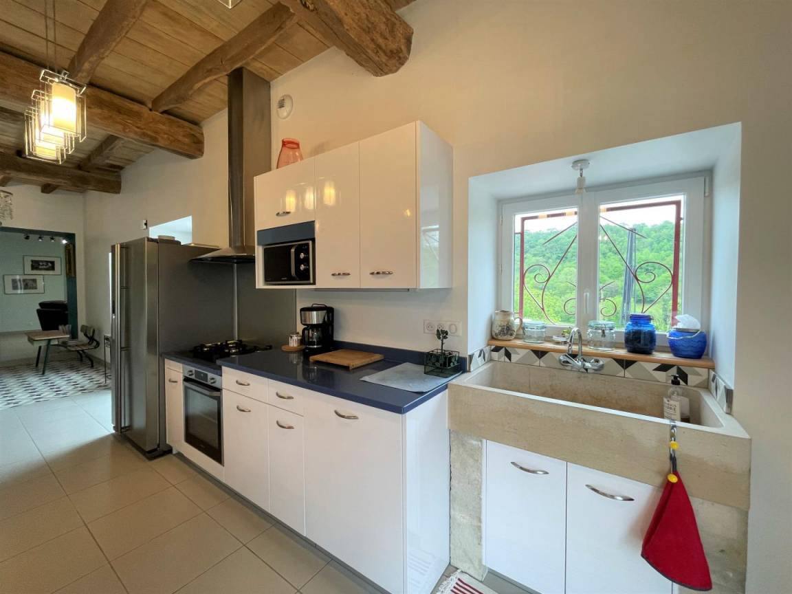 Erdgeschoss: Gut ausgestattete Küche mit Zugang zur Terrasse (Gasherd, Elektroherd, Geschirrspüler, Mikrowelle, amerikanischer Kühl-/Gefrierschrank).
