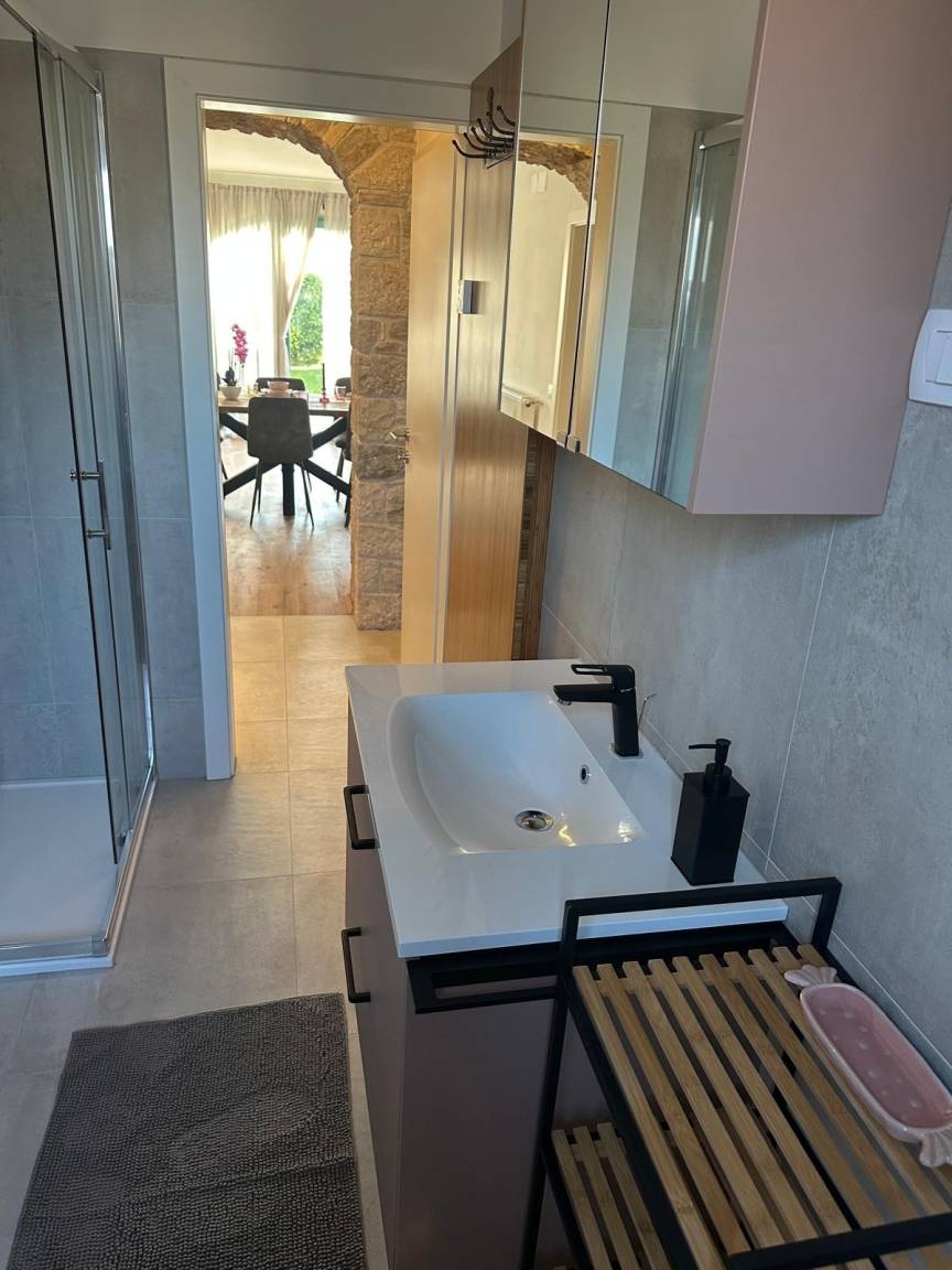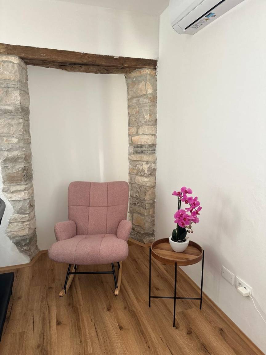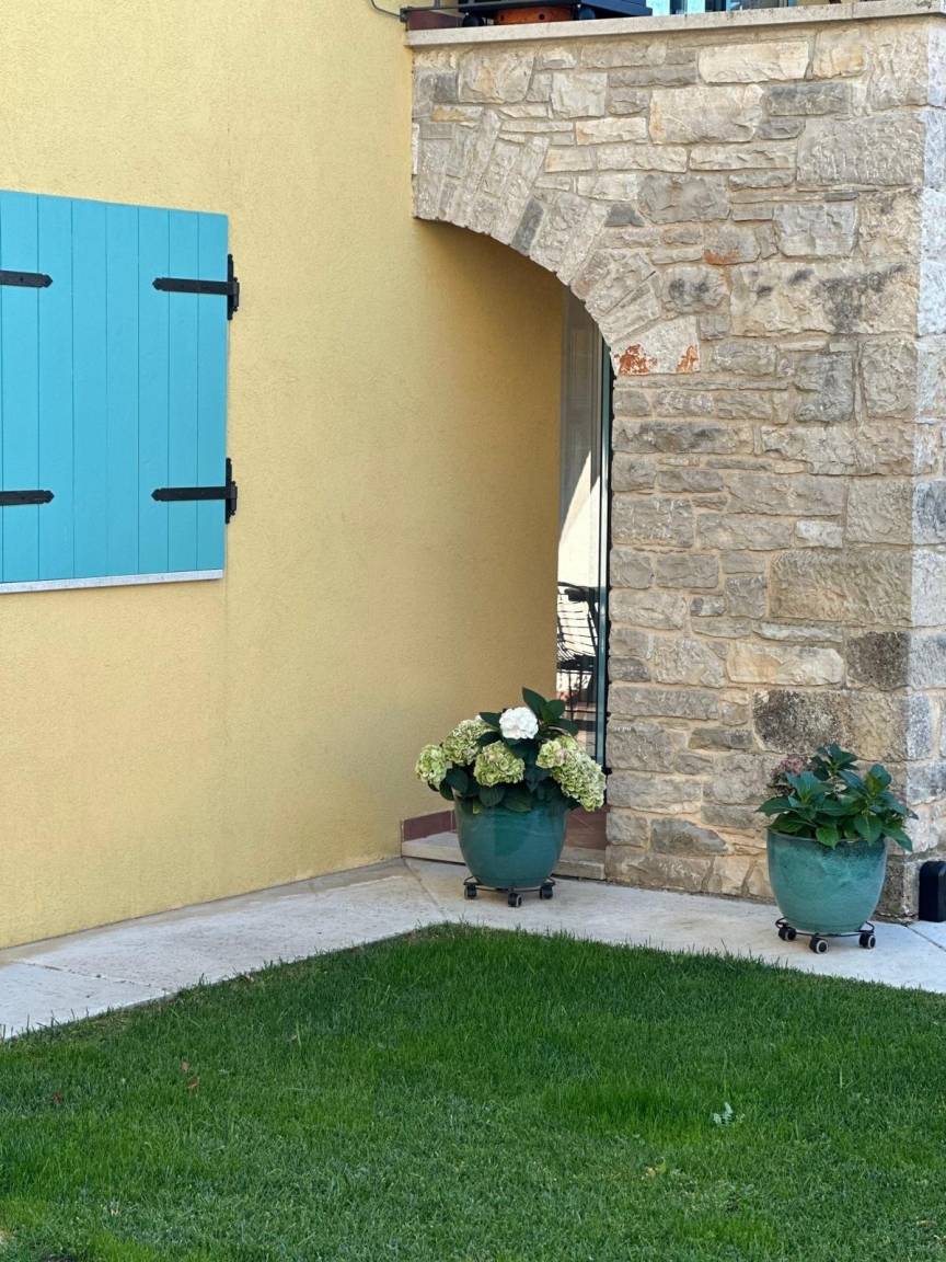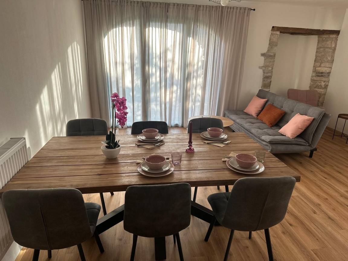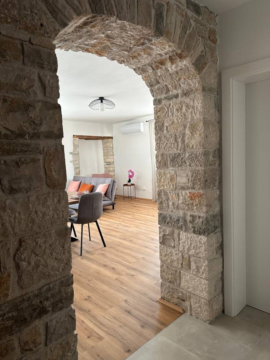 Stilvolle Apartments in einem urigen istrischen Dorf. Bibali liegt ruhig, nur 1,5 km von der charmanten Stadt Buje entfernt, eingebettet in Olivenhaine, umgeben von Steinhäusern und der malerischen Landschaft Istriens.