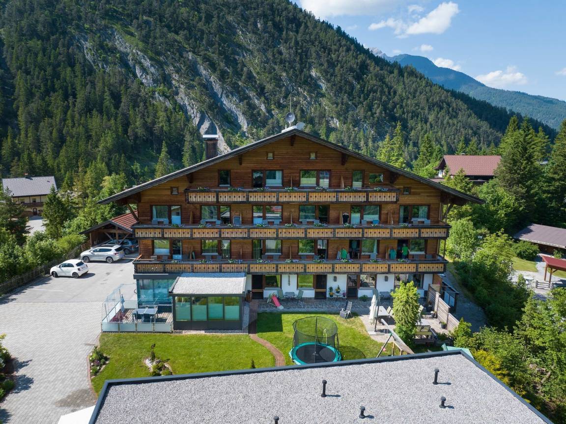 Unsere Familienpension bietet Ihnen gemütliche Apartments und Doppelzimmer mit Frühstück, einen modernen Wellnessbereich sowie grandiosen Ausblick auf die Zugspitze und unsere Bergwelt.