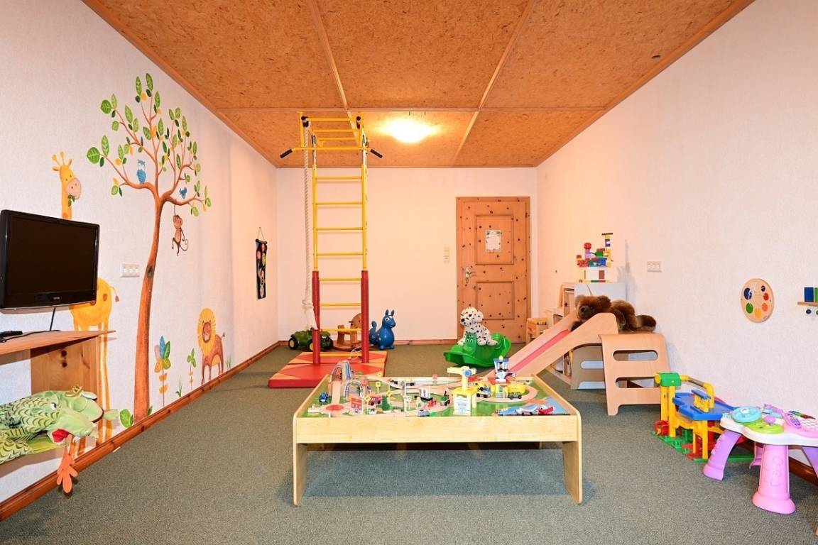 +ein gemütliches Indoor Kinderspielzimmer mit Puppenecke, Kletterturm und vielem mehr