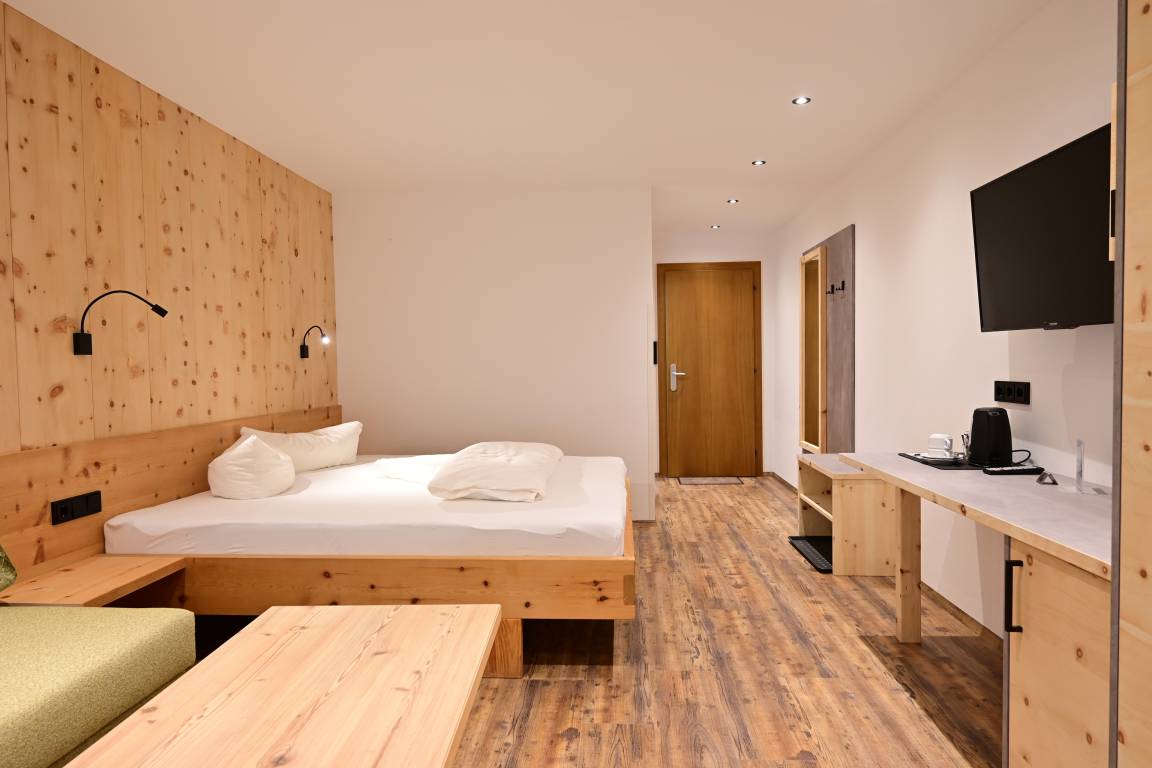 + acht Apartments und fünf Doppelzimmer mit Südbalkon und weitläufigem Bergblick auf unsere beeindruckende Tiroler Bergwelt