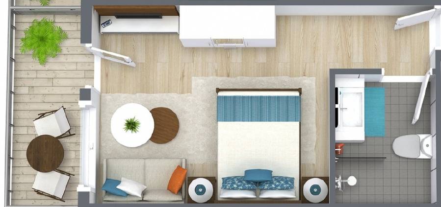 26 m² Gemeinschaftszimmer ∙ 1 Schlafzimmer ∙ 3 Gäste