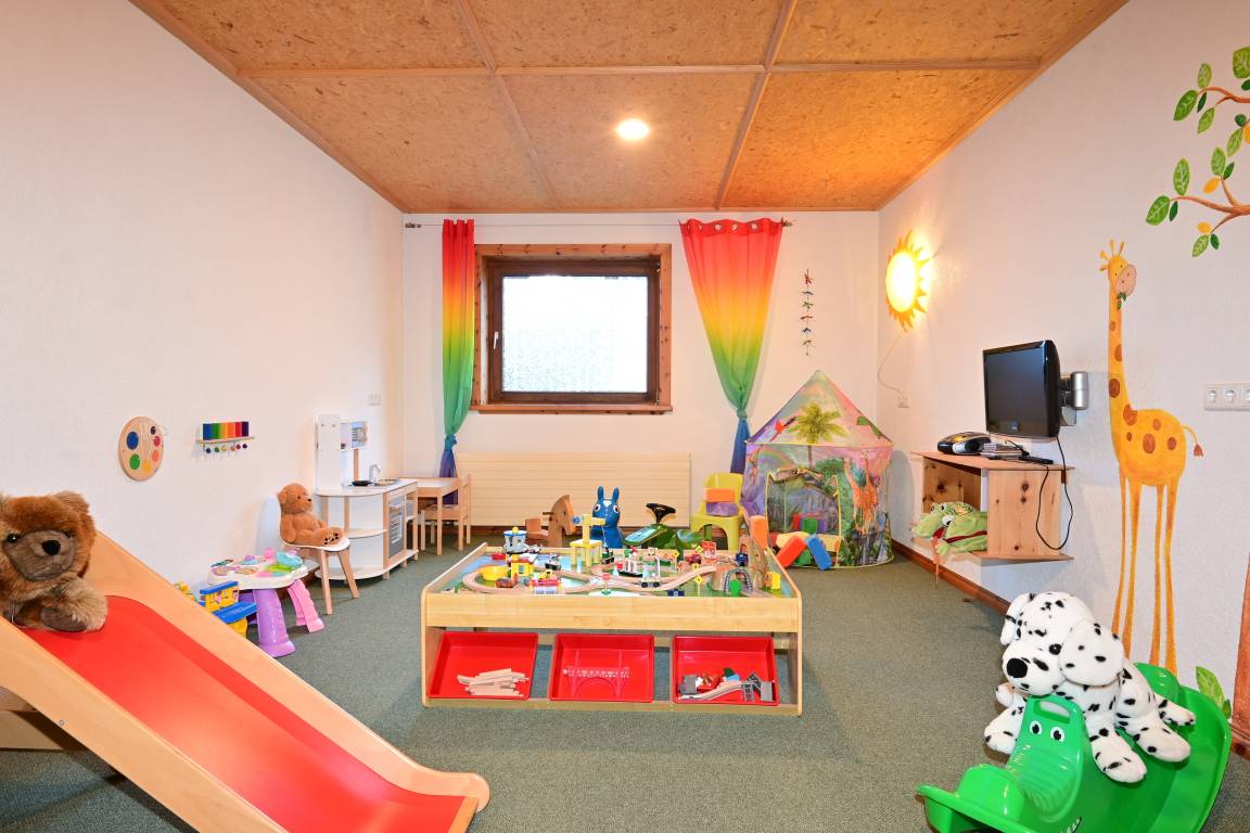 +ein gemütliches Indoor Kinderspielzimmer mit Puppenecke, Kletterturm und vielem mehr