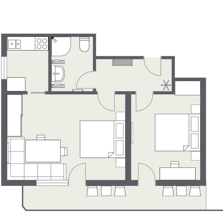 55 m² Ferienwohnung ∙ 1 Schlafzimmer ∙ 4 Gäste
