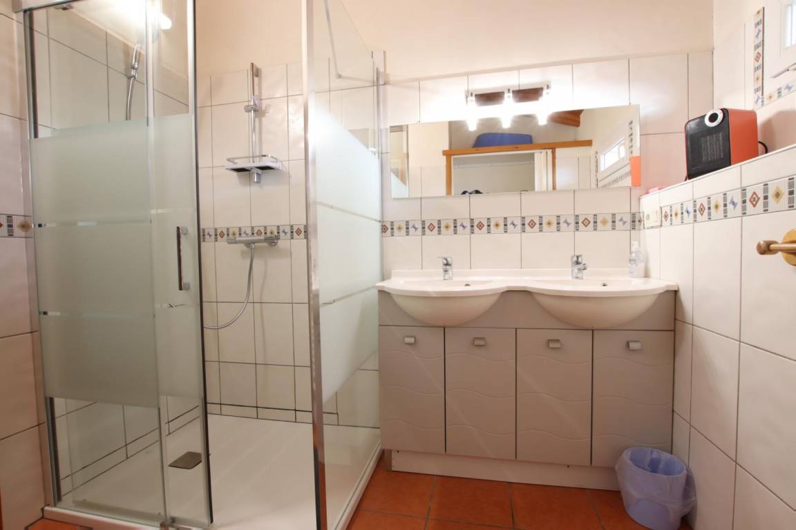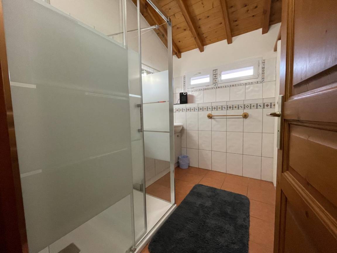 Obergeschoss: 3 Schlafzimmer (2 Doppelbetten. 2 Einzelbetten). Duschraum, WC.