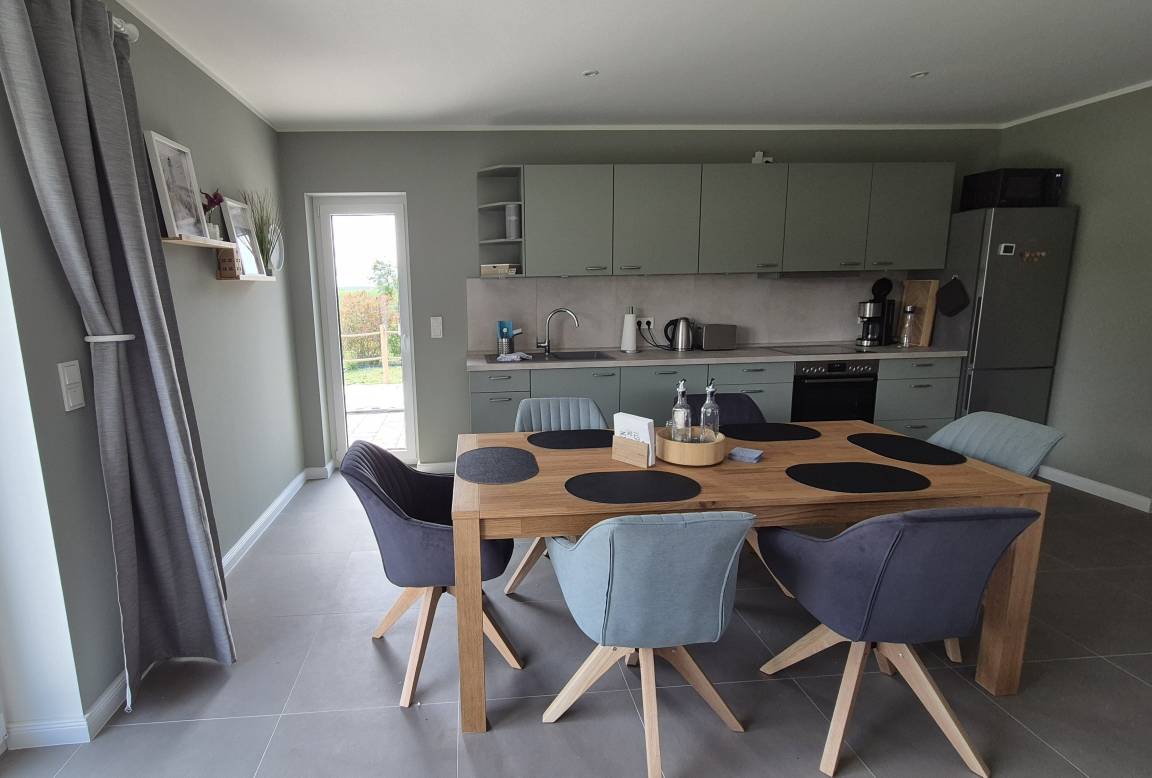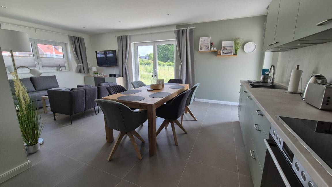 Die Ferienwohnung Kalle liegt im idyllischen Wischuer, nur wenige Minuten von der Ostsee entfernt. Auf ca. 60 m² bietet sie zwei Schlafzimmer, einen hellen Wohnbereich mit Essecke, eine voll ausgestattete Küche und ein modernes Bad mit Dusche.