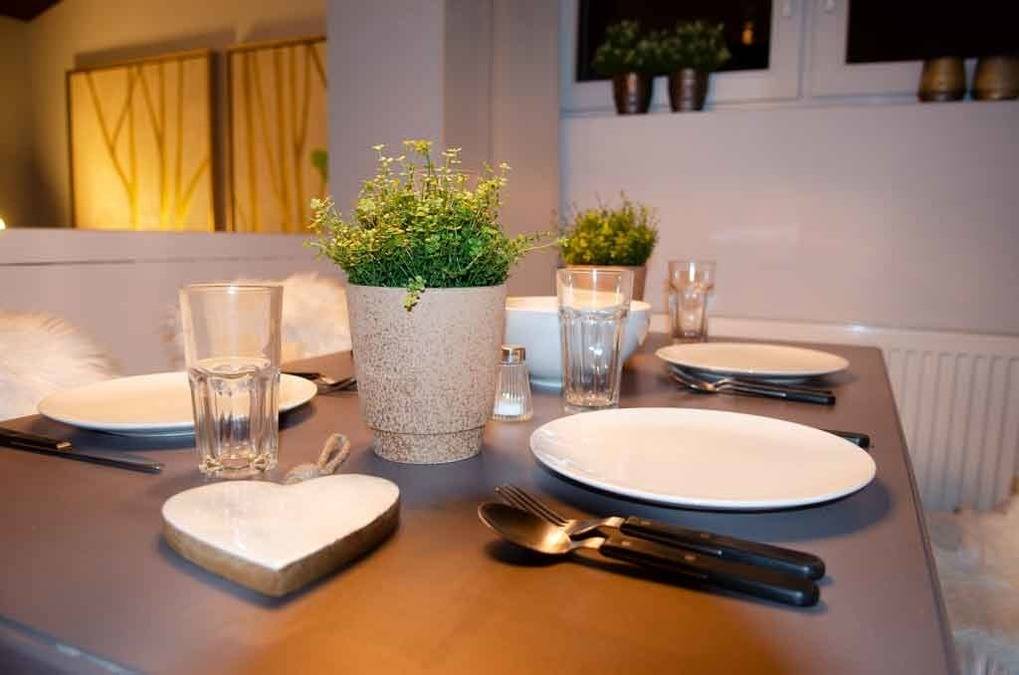 Das Cottage verfügt über eine vollausgestattete Küche, einen separaten Wohn- und Essbereich, der durch die Split-Level-Anordnung ein entspanntes Raumgefühl aufkommen lässt, ein modernes Bad mit großzügigem Duschbereich und einen Abstellraum mit Waschtrockner. WLAN wird ebenfalls bereitgestellt.