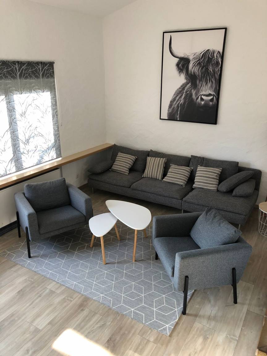 Genießen sie den hellen, großzügigen Wohnbereich mit offenem Kamin und direktem Zugang zur Terrasse und der angrenzenden Wiese.