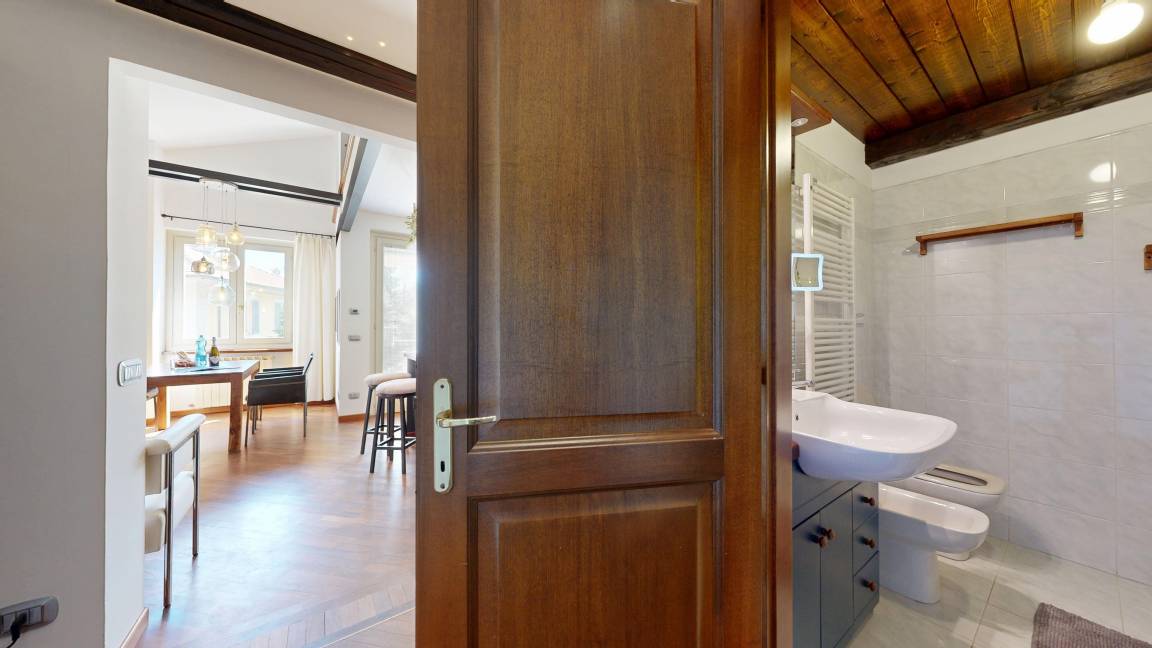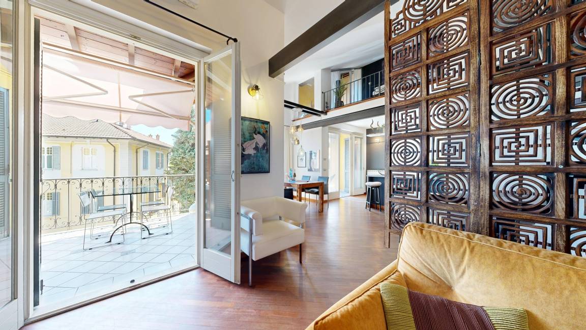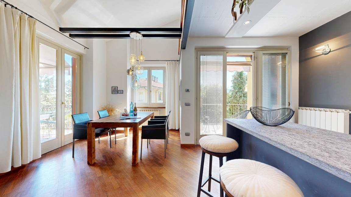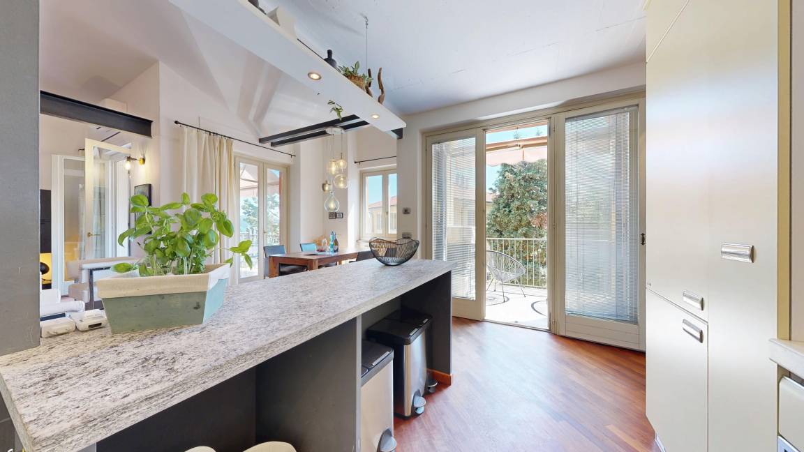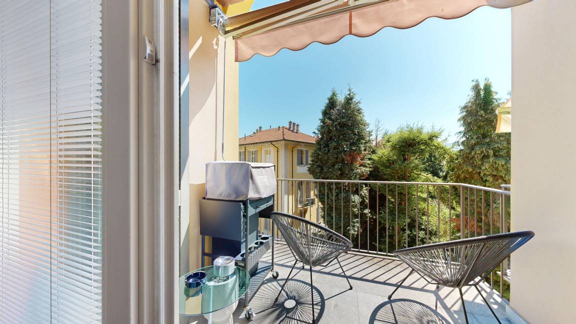 Verbania ist die Hauptstadt der Provinz Verbano-Cusio-Ossola und mit 34000 Einwohnern die größte Stadt am Lago Maggiore und daher auch in der Nebensaison voller Leben und Geschäftigkeit. Die Lage der außergewöhnlichen Wohnung im Stadtteil Intra bietet alles, was Städteurlauber schätzen: Sowohl die Seepromenade, der Motorbootverleih und das Strandbad als auch die hübsche Altstadt mit der Basilica di San Vittore, den kleinen Geschäften in malerischen Gassen, den vielen Restaurants und Bars, Sehenswürdigkeiten wie die Villa Taranto mit ihrem Botanischen Garten sind fußläufig zu erreichen. Der Hafen für die Autofähre an das Ostufer nach Laveno befindet sich in 2 km Entfernung, die Anlegestelle der Ausflugsboote zu den beliebten Borromäischen Inseln ist etwa 4 km entfernt. Auch für Golfer ist die ganze Region mit vier Plätzen im Umkreis von 20 km ein Paradies. Die malerischen Städte Cannero Riviera, Cannobio und Stresa sowie das herrliche Hinterland für ausgedehnte Spaziergänge in der Natur sind nur 30 bis 45 Autominuten entfernt.