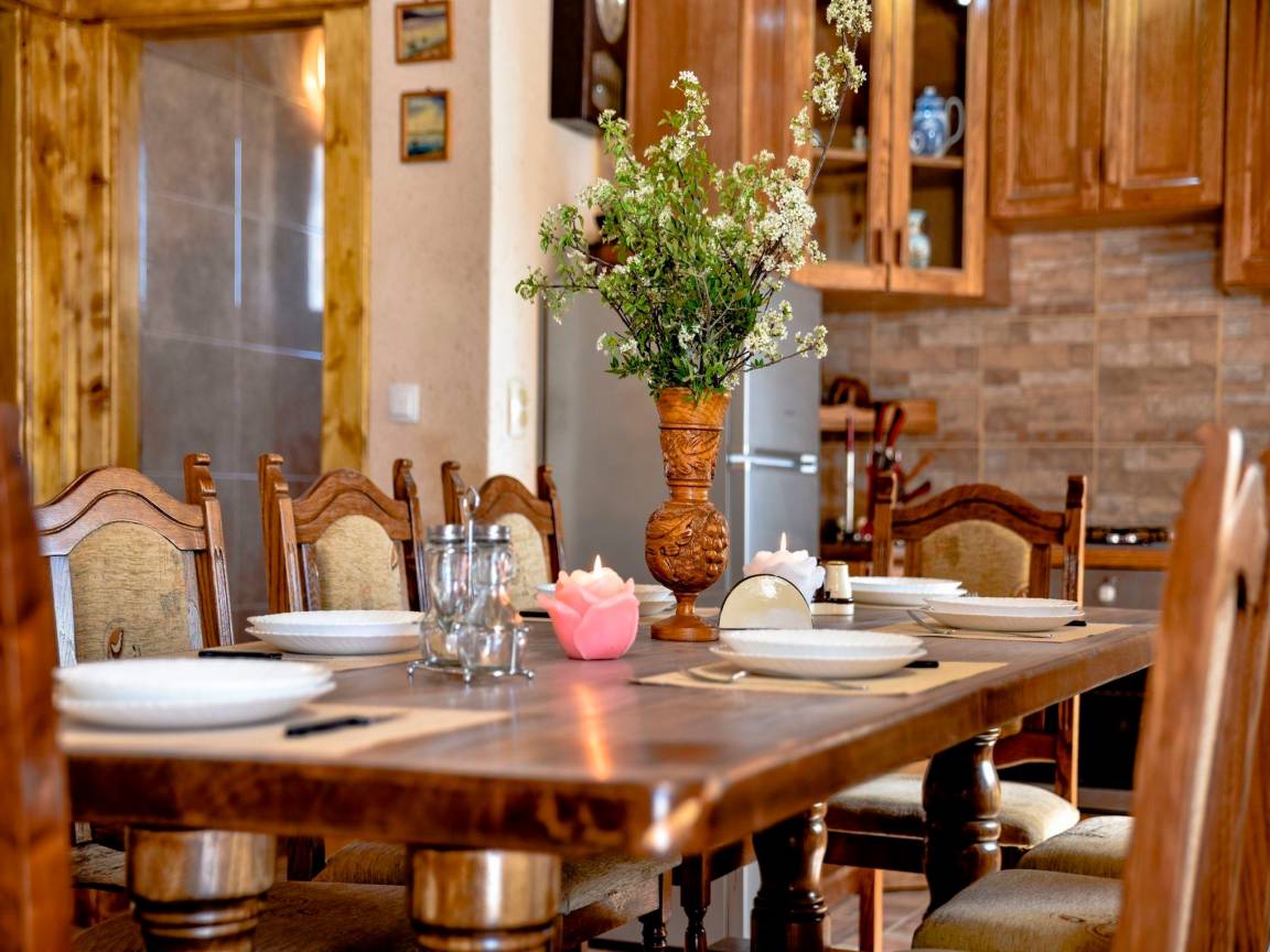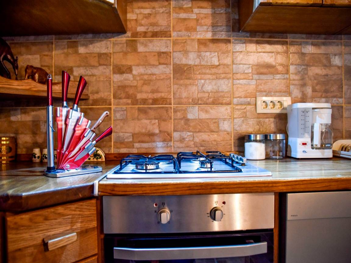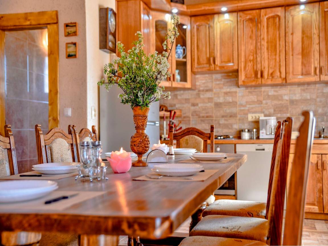 Es ist ein countrystyle Haus, alles in Holz und Stein gemacht. Ein Schlafzimmer hat Doppelbett, die anderen zwei je zwei Einzelbetten und im Wohnzimmer ist ein Schlafsofa für zwei Personen. Ein Bad mit Dusche und Waschmaschine und eine extra Toilette auch vorhanden. Die Küche ist voll ausgestattet mit Ofen, Herd, Spülmaschine, einem grossen Esstisch mit 8 Stühlen...