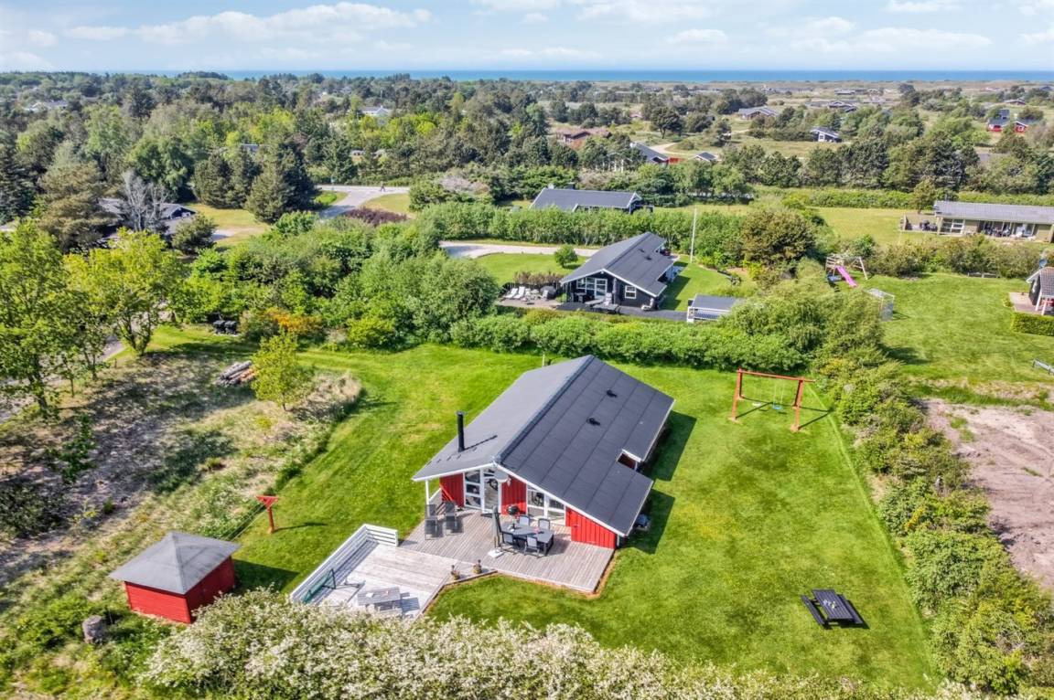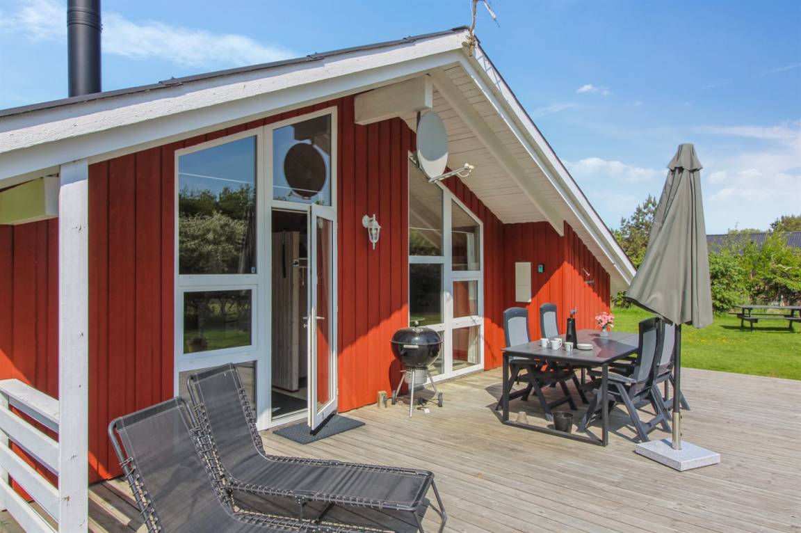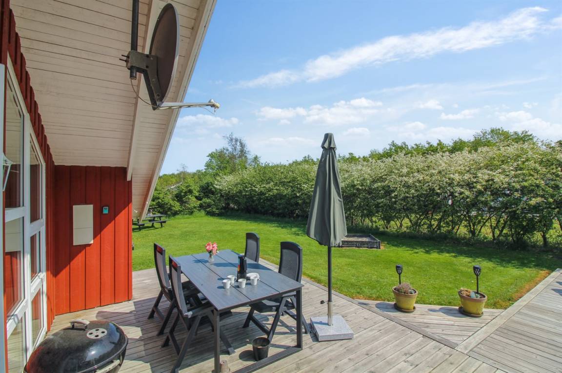 DraußenDie Ferienunterkunft liegt auf einem 1723 m² großen Naturgrundstück. Die Entfernung zum Meer beträgt 1300 m. Die nächste Einkaufsmöglichkeit liegt 700 m entfernt. Es steht ein offenes Terrassenareal zur Verfügung. Schaukel. Sandkasten. Fußballtor. Es steht ein Grill zur Verfügung. Parkplatz auf dem Grundstück.