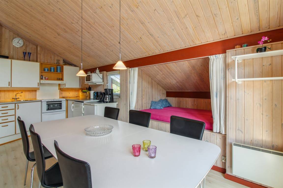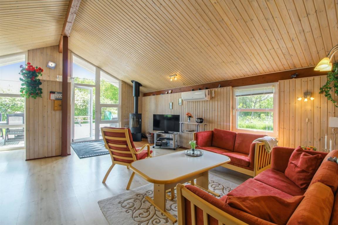 Ein gut gelegenes Ferienhaus in einem beliebten Feriengebiet – in naturschöner Umgebung mit Seen und einem schönen Badestrand. Das Gebiet lädt zu lange Spaziergänge, sowohl mit als auch ohne den Familienhund, ein.