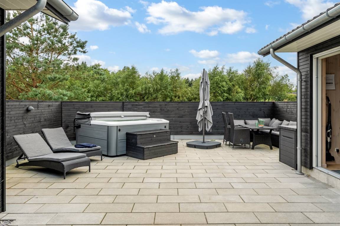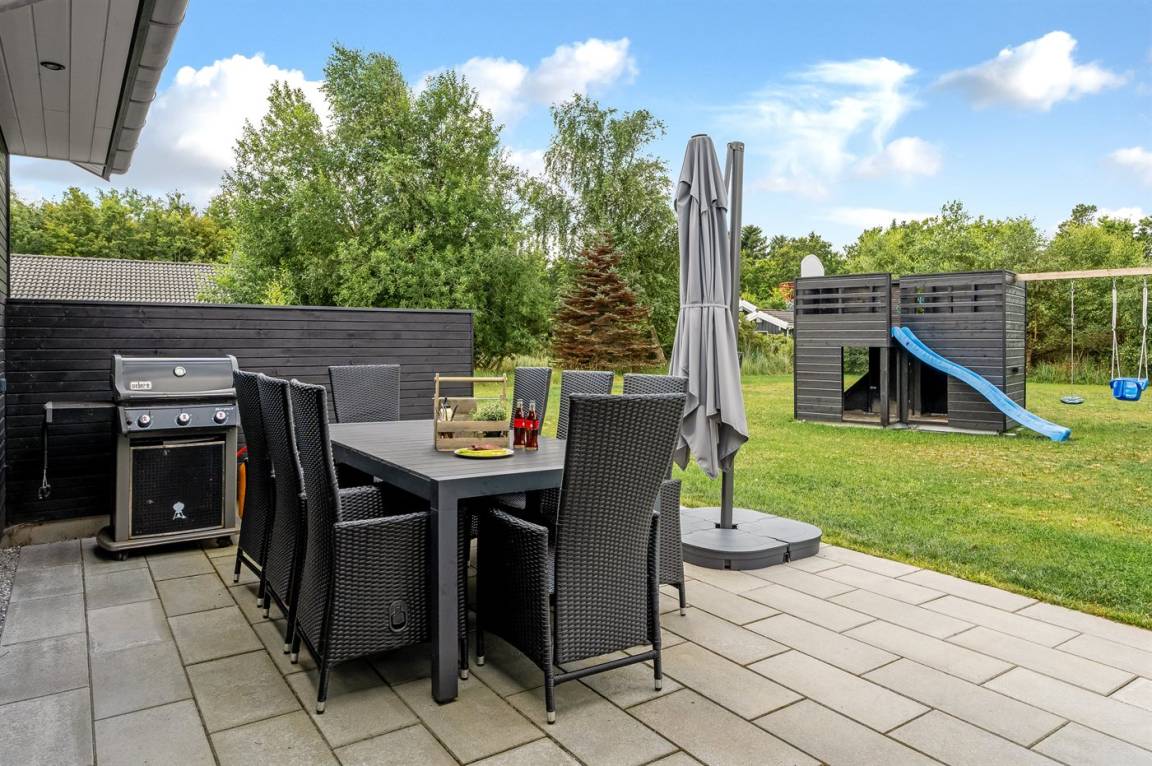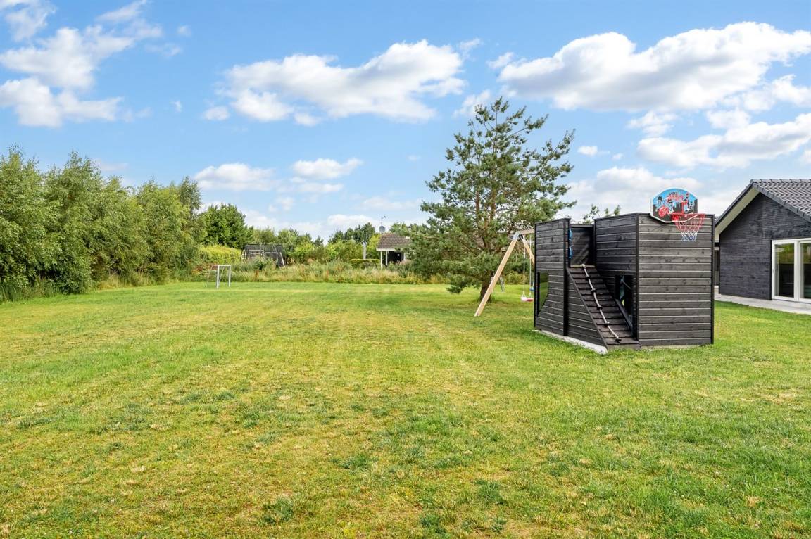 DraußenDie Ferienunterkunft liegt auf einem 1840 m² großen Naturgrundstück. Die Entfernung zum Meer beträgt 990 m. Die nächste Einkaufsmöglichkeit liegt 800 m entfernt. Es steht ein offenes Terrassenareal zur Verfügung. Geräteraum. Schaukel. Spielturm. Rutsche. Fußballtor. Außendusche. Es steht ein Grill zur Verfügung. Es ist ein Ladestecker für Elektroautos installiert. Parkplatz auf dem Grundstück.