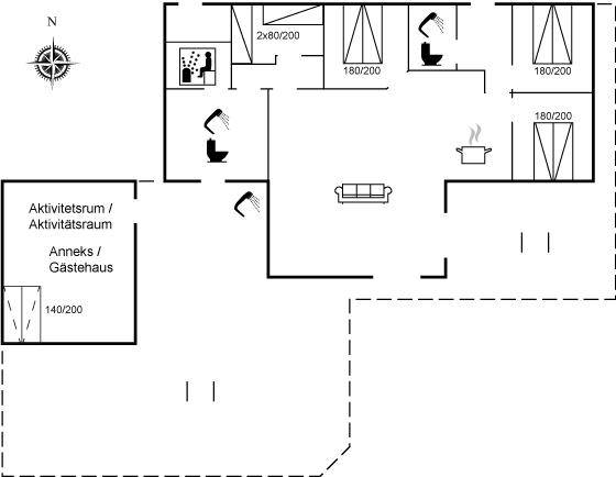 MultimedienIn der Ferienunterkunft gibt es 1 Fernseher mit Smart-TV. Mindestens 4 dänische Fernsehsender. 1-3 schwedische Fernsehsender. 1-3 norwegische Fernsehsender. Mindestens 4 deutsche Fernsehsender. 1-3 englische Fernsehsender. Es steht kabellose Internetverbindung zur Verfügung.